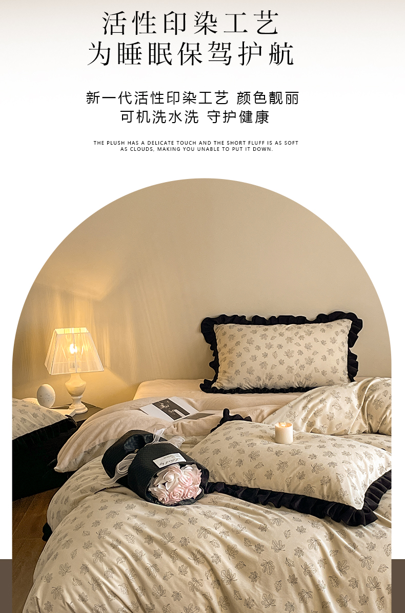 商品名称:羚羊语家纺 2024新款轻法式赫本风灯芯绒四件套提花立体韩版花边牛奶绒三件套 繁花