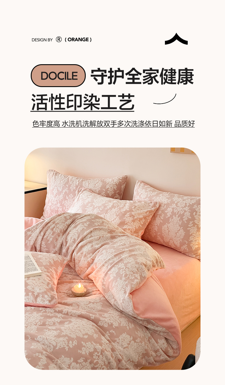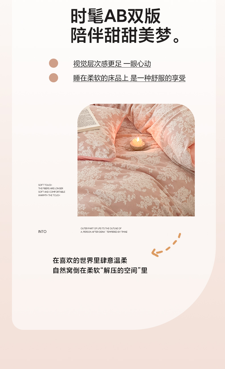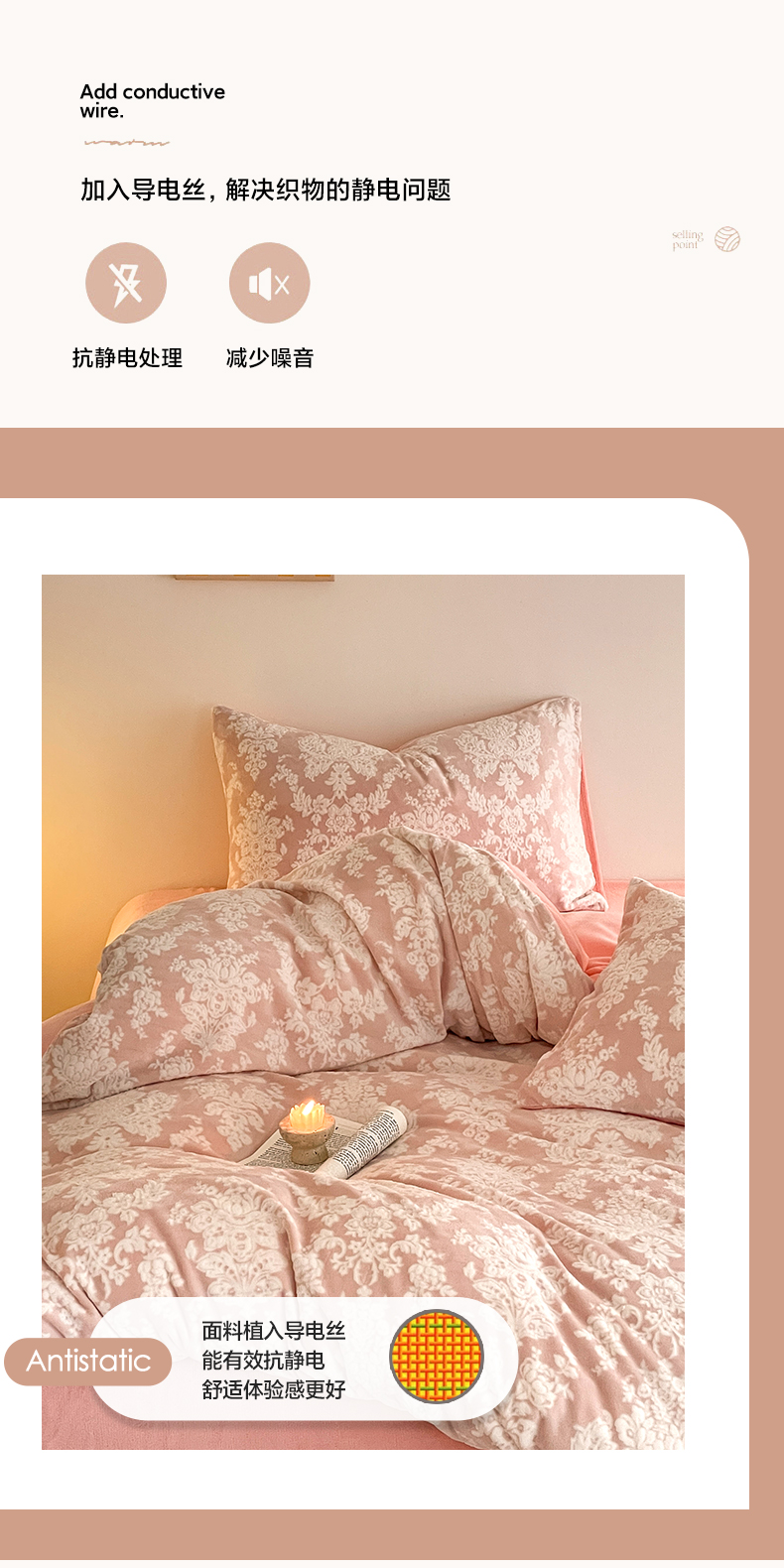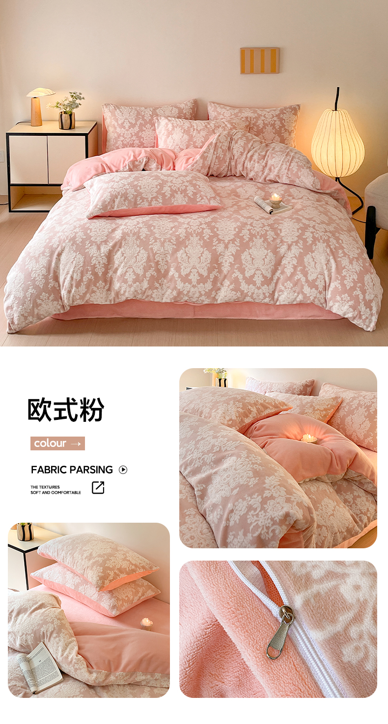 商品名称:雅居纺家纺 2024新款花卉雕花绒四件套 欧式粉