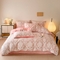 雅居纺家纺 2024新款花卉雕花绒四件套 欧式粉