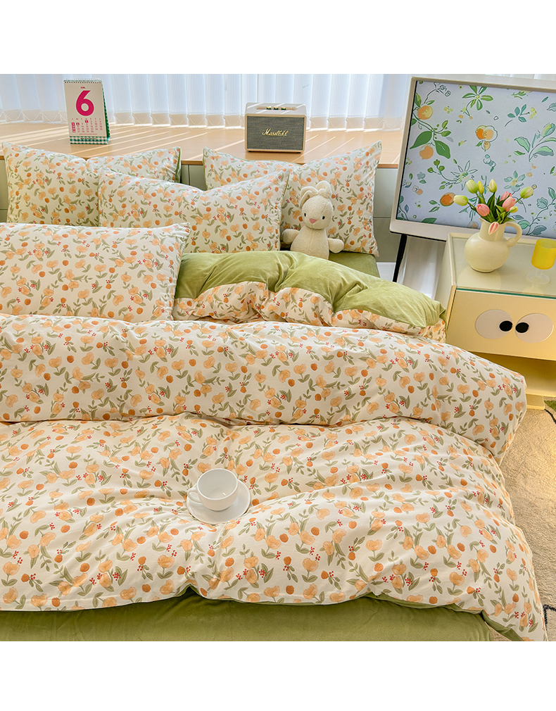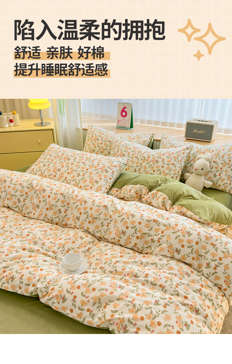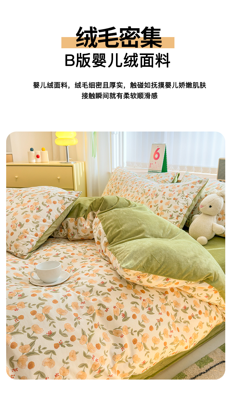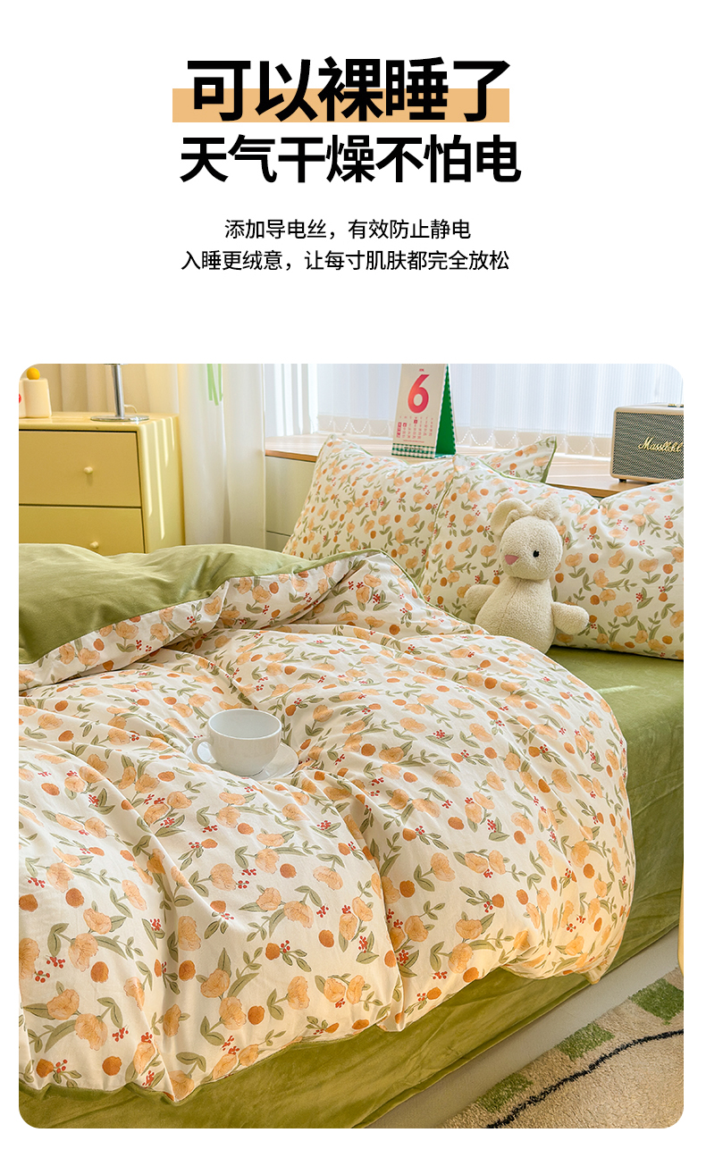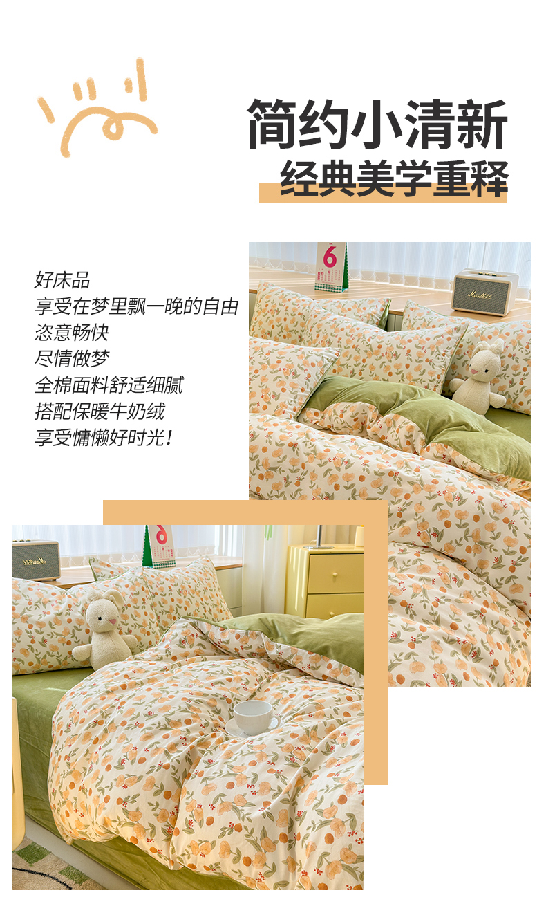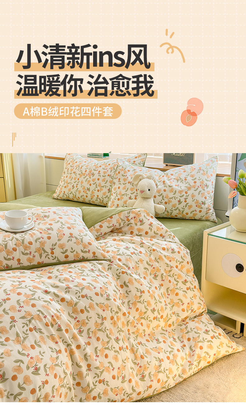 当前位置: 91家纺网 > 商品网购 > 床品套件 > 四件套 > 其它四件套 > 清雅福 2024新款小清新ins棉加绒印花四件套系列-棉绒风格二 花千朵