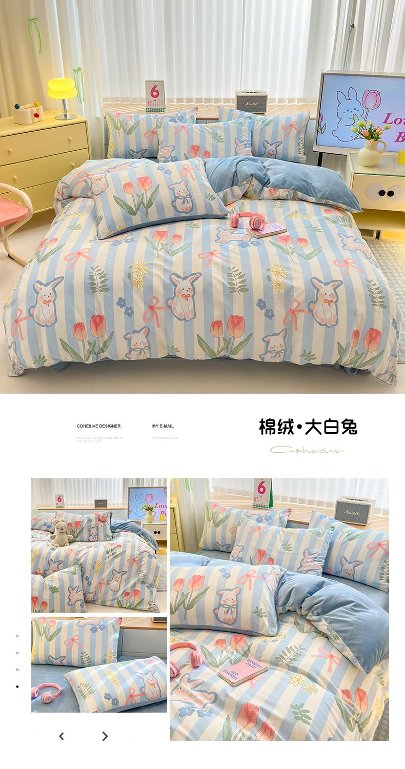 当前位置: 91家纺网 > 商品网购 > 床品套件 > 四件套 > 其它四件套 > 清雅福 2024新款小清新ins棉加绒印花四件套系列-棉绒风格二 条纹狗狗