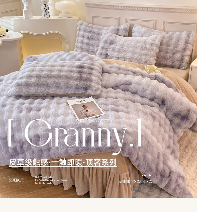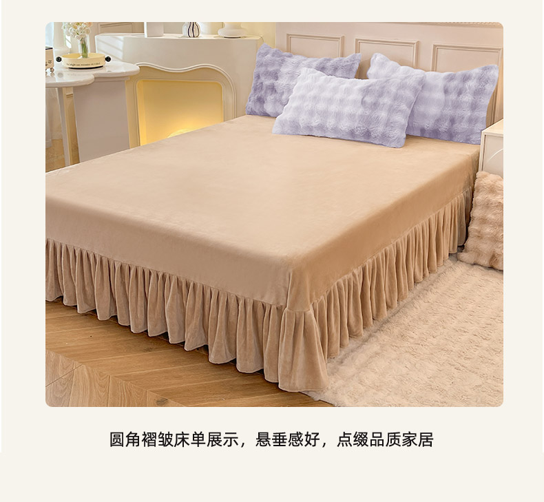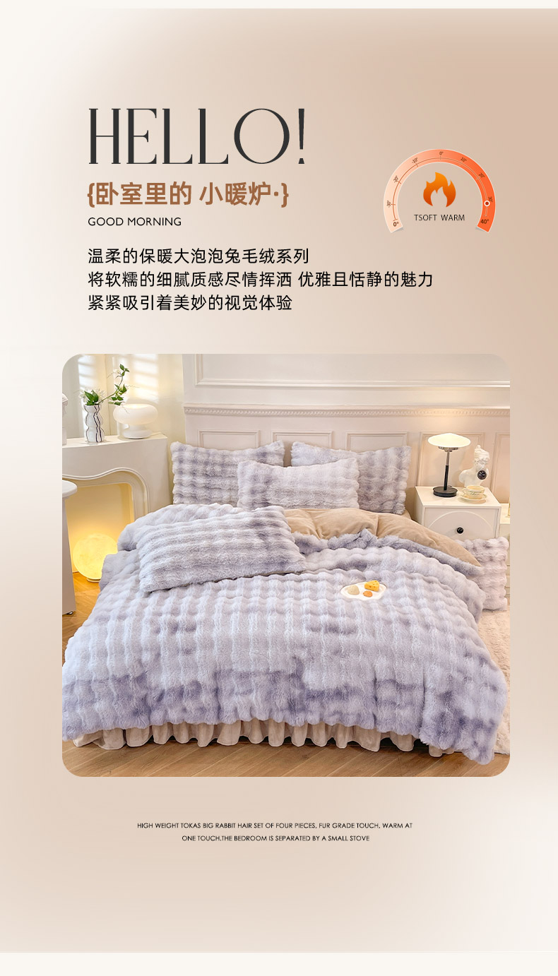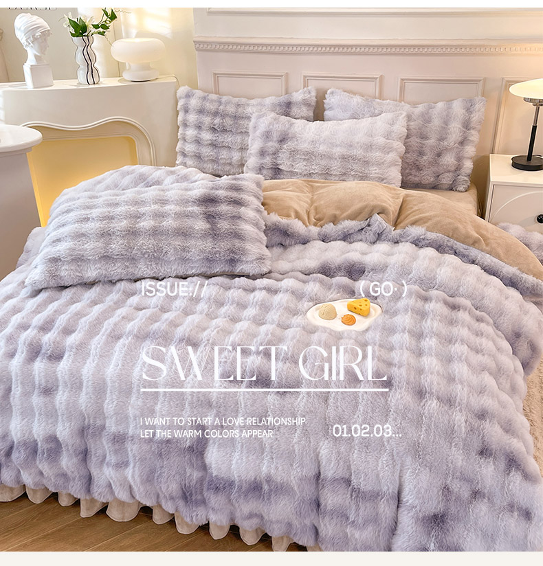 商品名称:欧冠家纺 2024秋冬新款纯色泡泡绒和七彩泡泡床裙款四件套 七彩-梦幻紫
