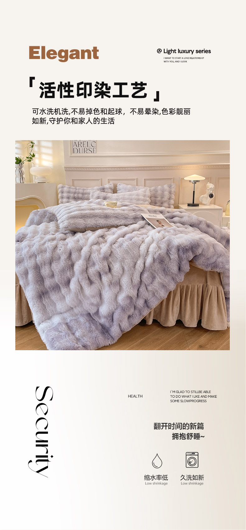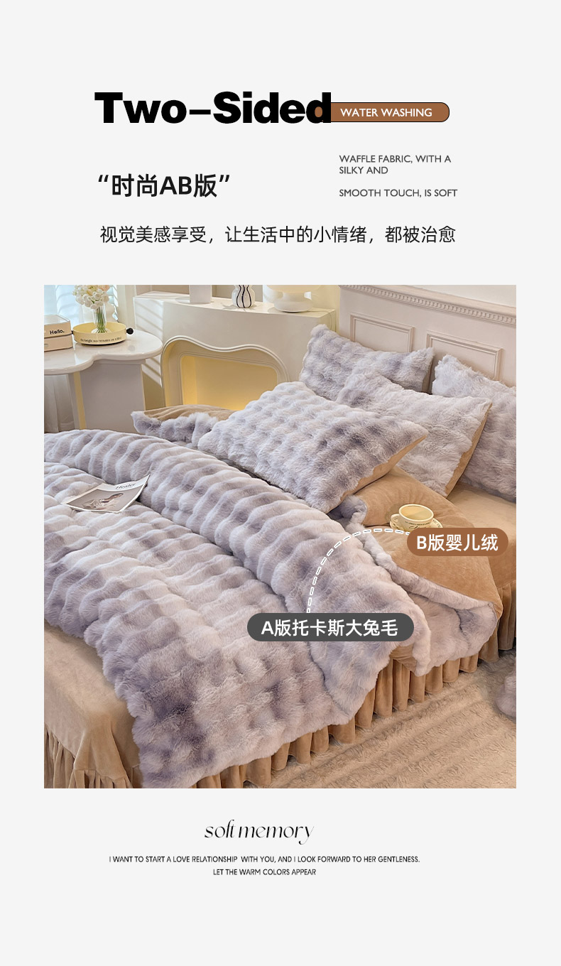 欧冠家纺 2024秋冬新款纯色泡泡绒和七彩泡泡床裙款四件套 七彩-梦幻紫