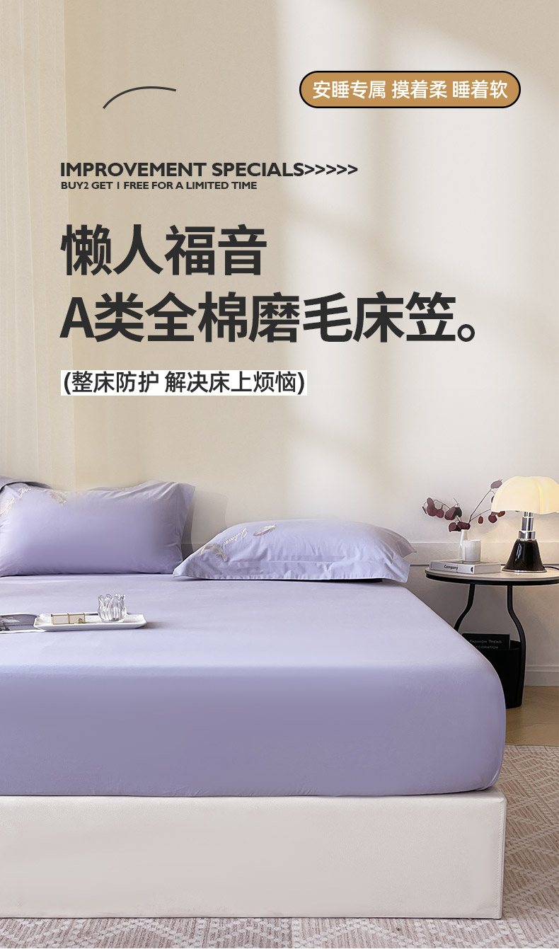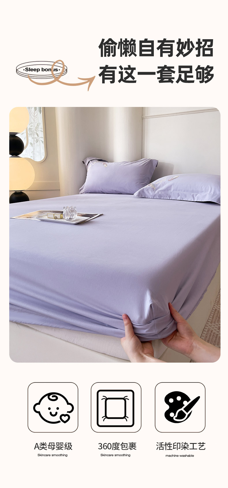 • 91家纺网 家纺一手货源 找家纺  2024新款【A类母婴级】加厚全棉磨毛四件套纯棉保暖床笠纯色床垫保护罩冬季单件床上用品 薰衣紫【A类加厚全棉品质】