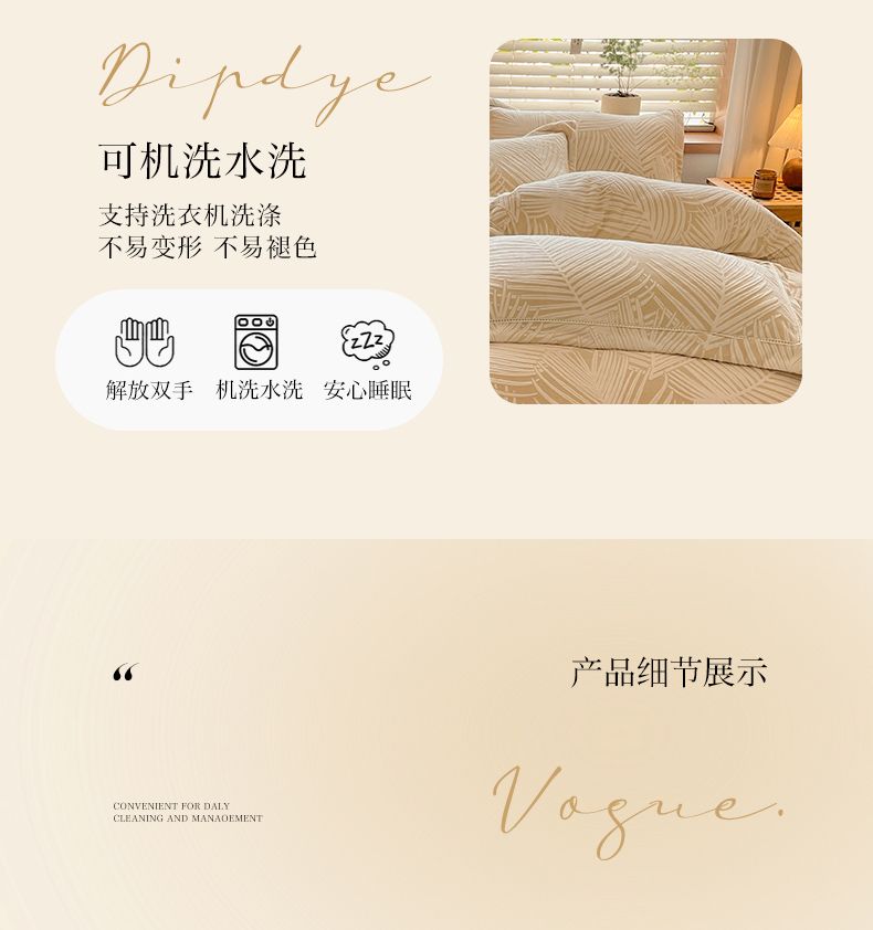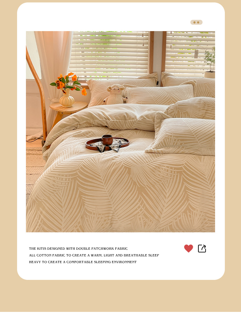 简如 2025新款全棉磨毛印花四件套(有买家秀提供) 叶影-粉,叶影-粉