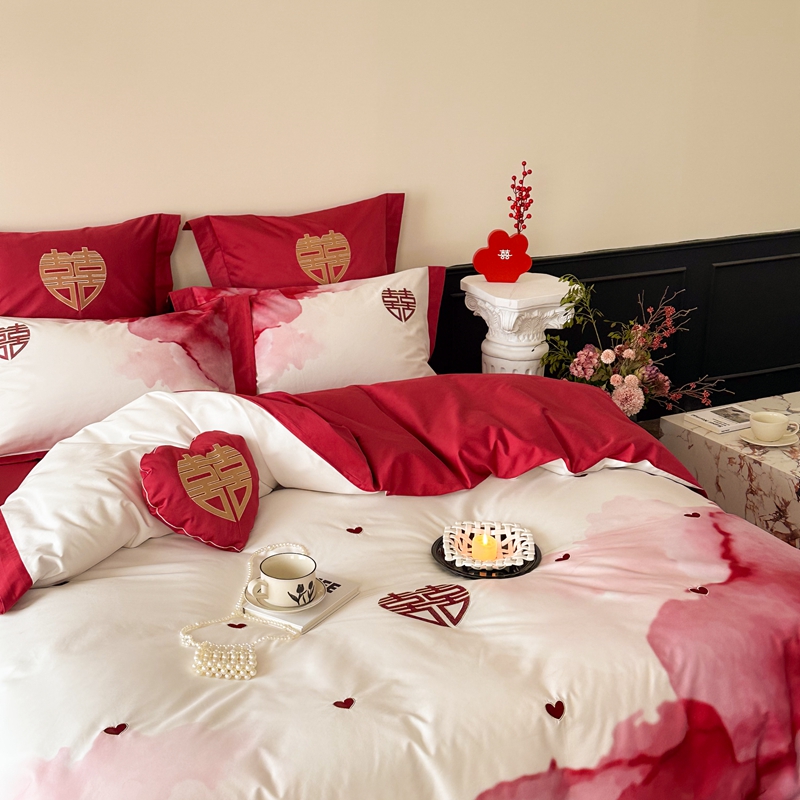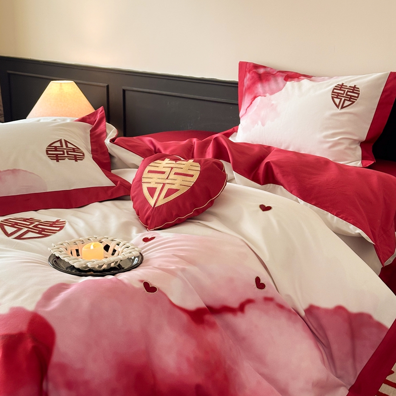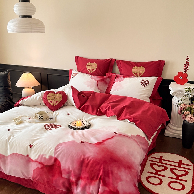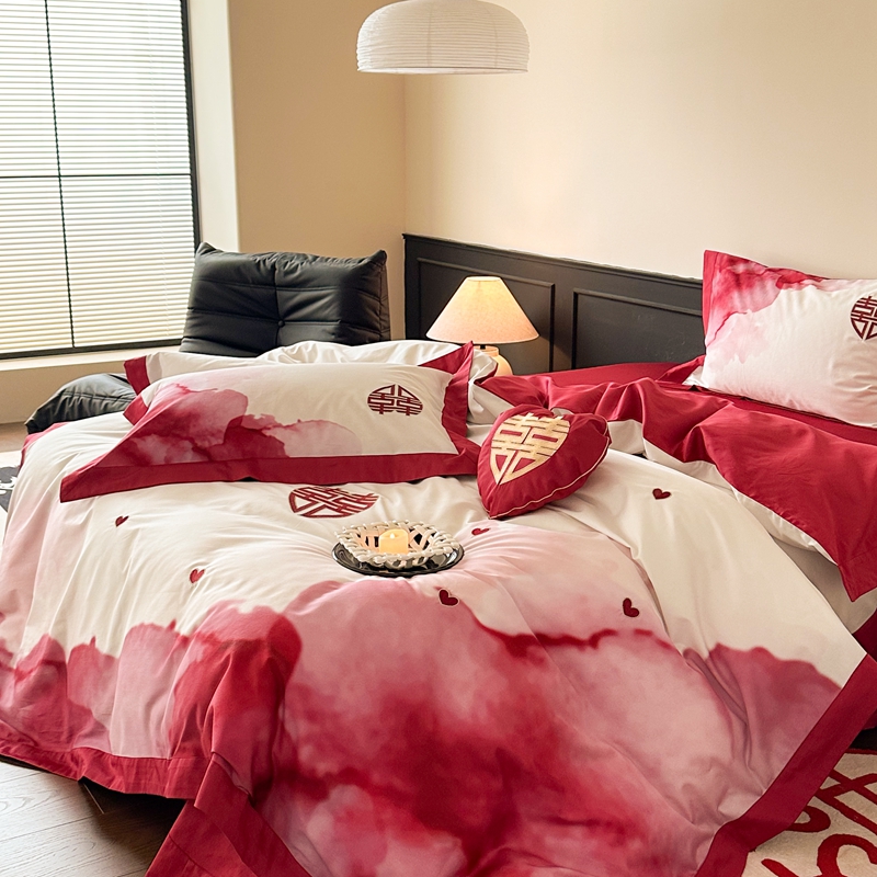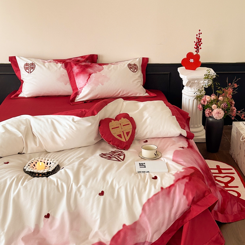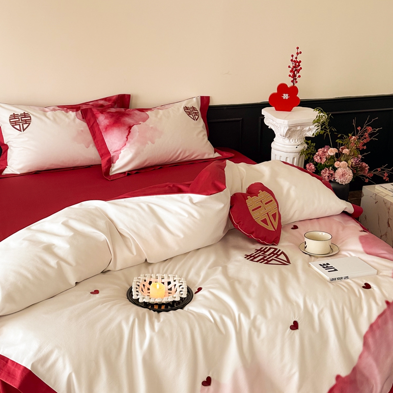 (总)西西家居 2024新款大红婚庆100支澳棉全棉四件套-小美满