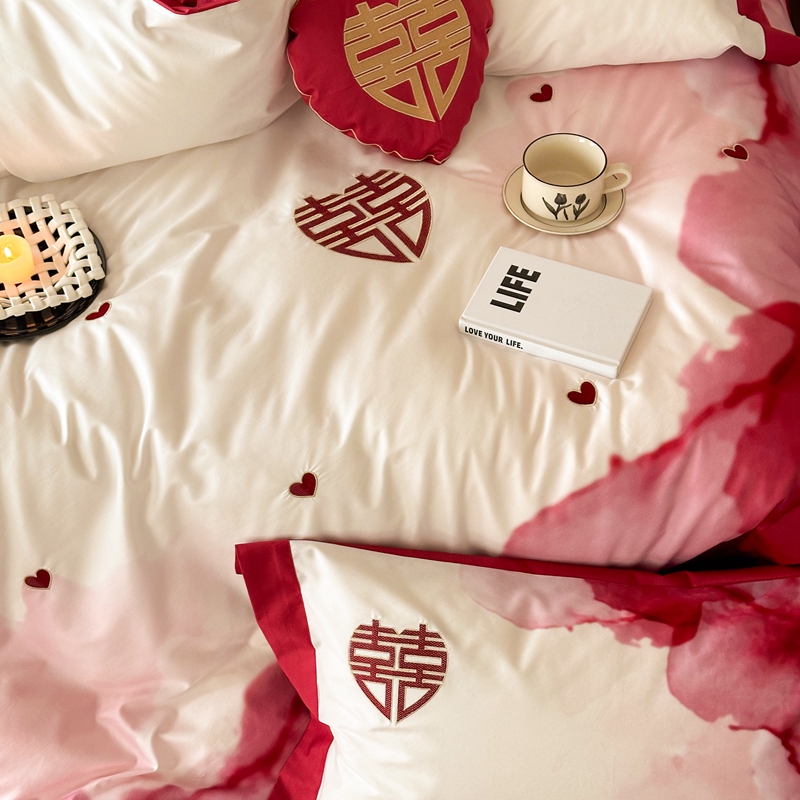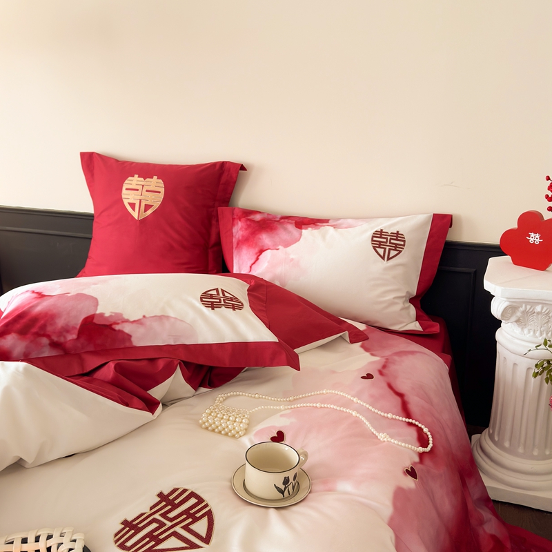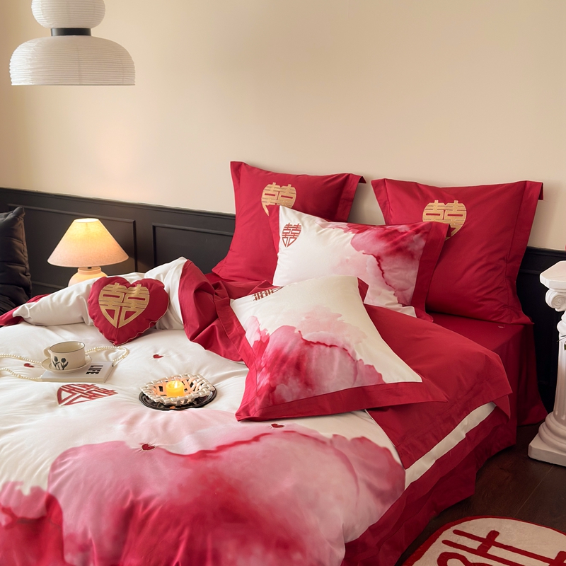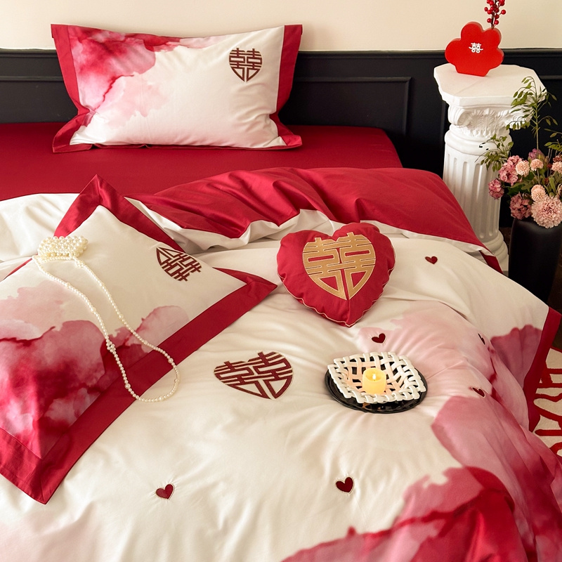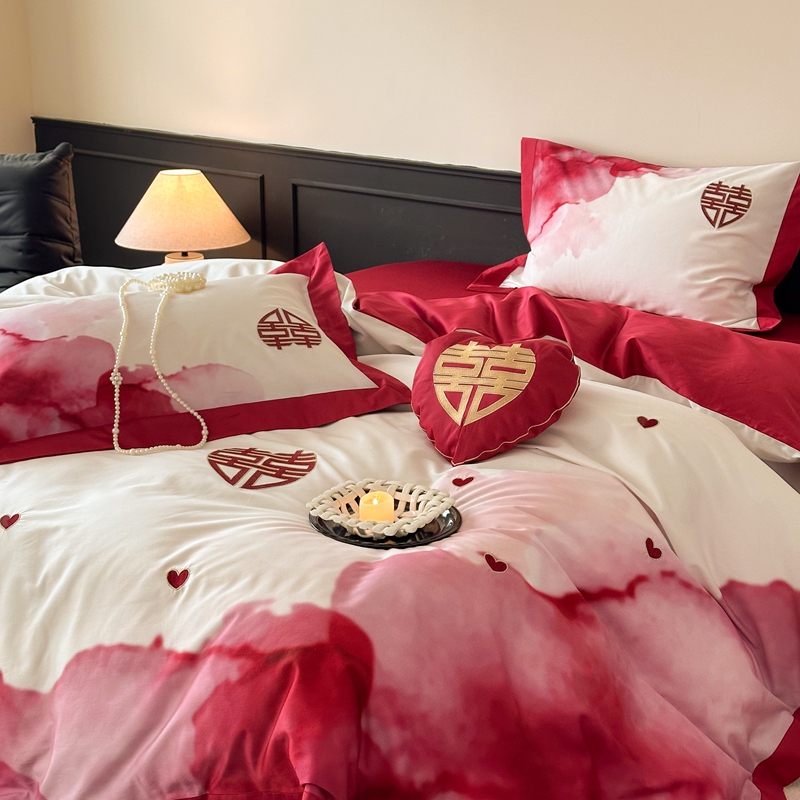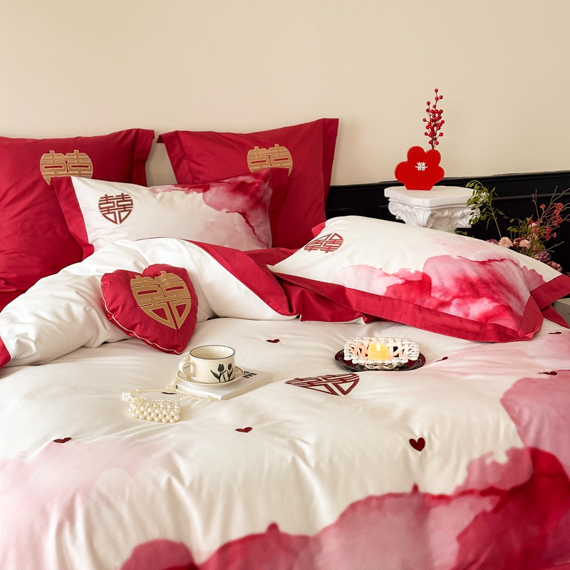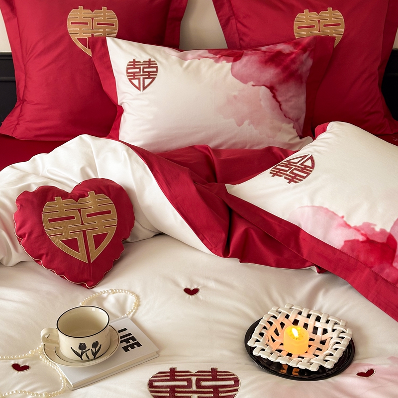 (总)西西家居 2024新款大红婚庆100支澳棉全棉四件套-小美满