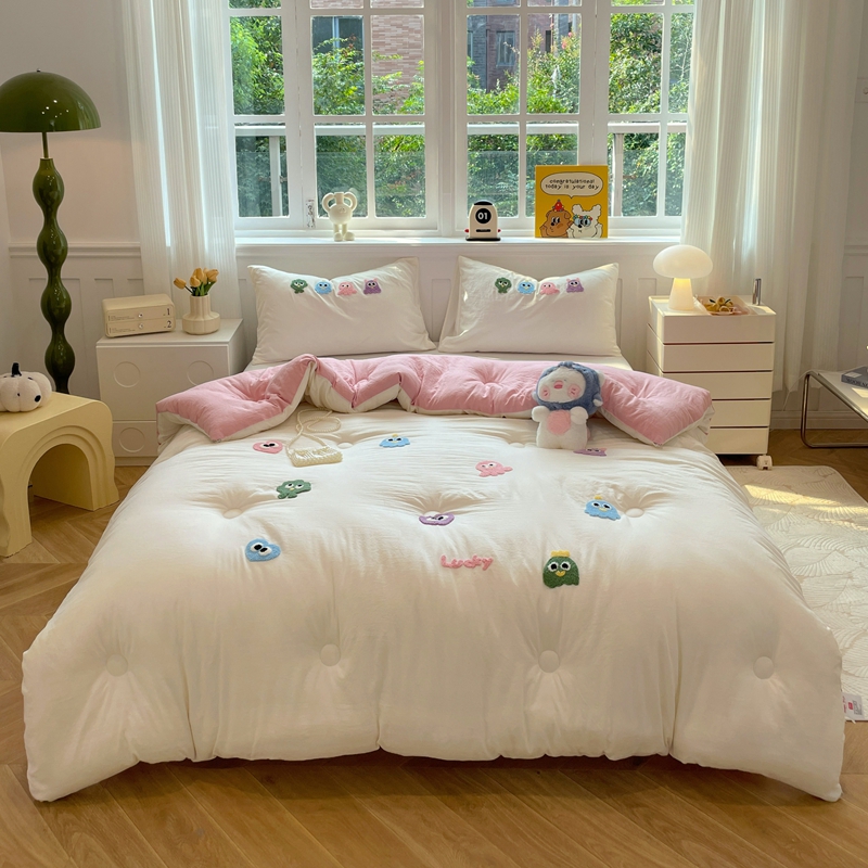 • 91家纺网 家纺一手货源 找家纺 八方汇(一户被芯生活馆) 2024新款水洗棉卡通毛巾绣款被子被芯 小水怪粉色