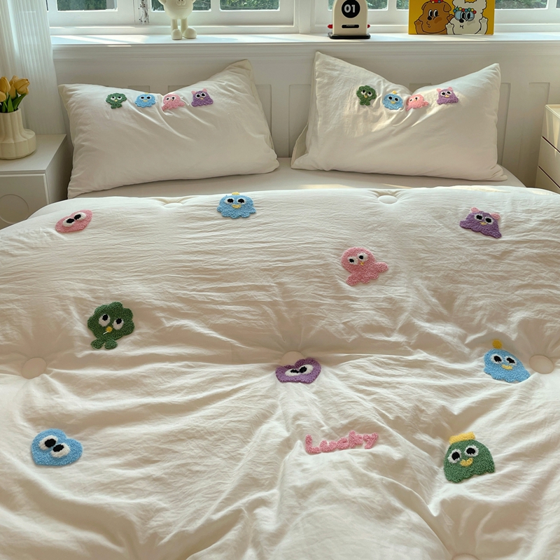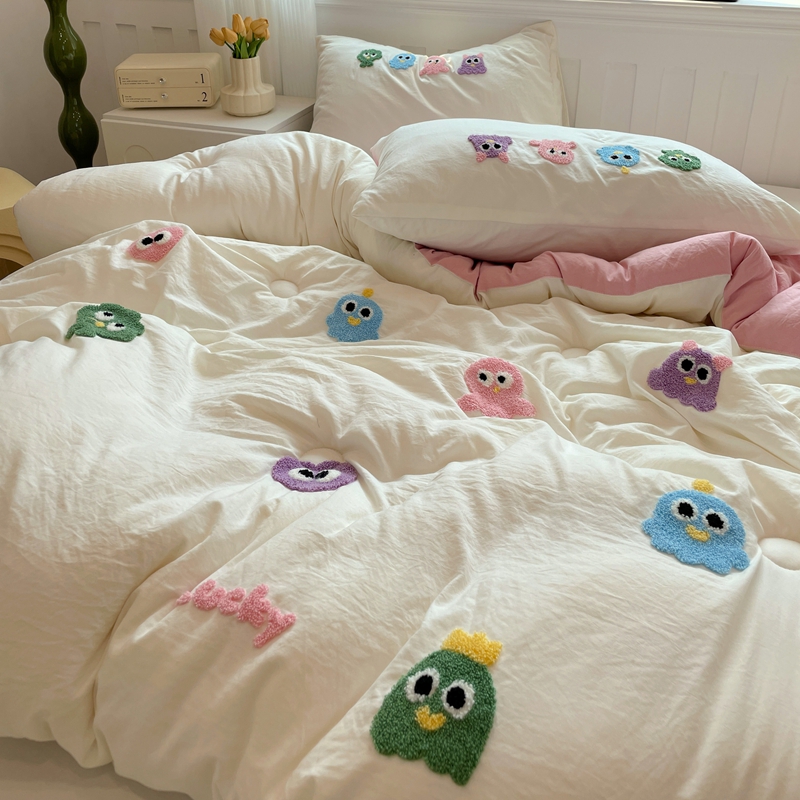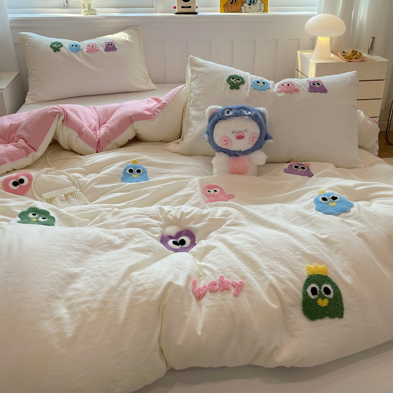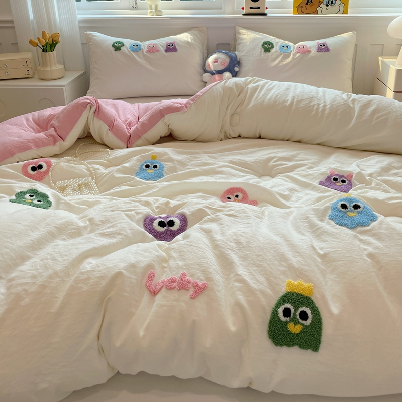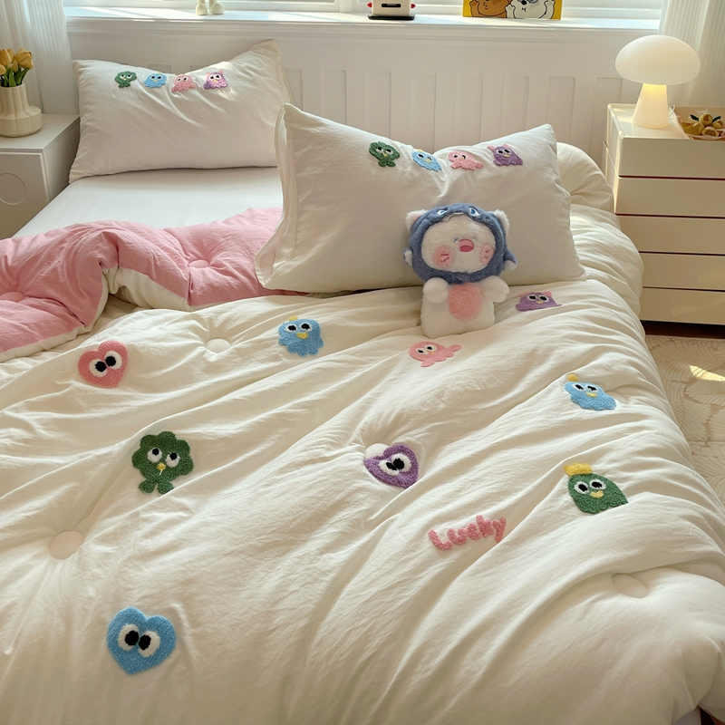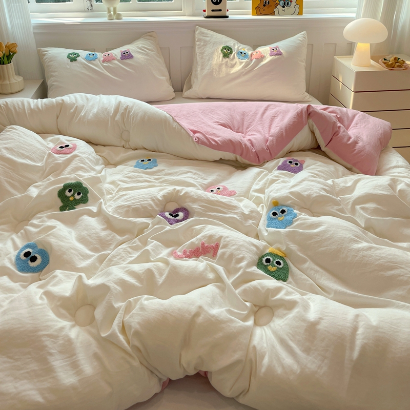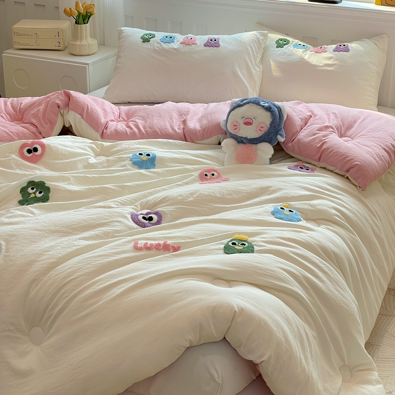 八方汇(一户被芯生活馆) 2024新款水洗棉卡通毛巾绣款被子被芯 小水怪粉色