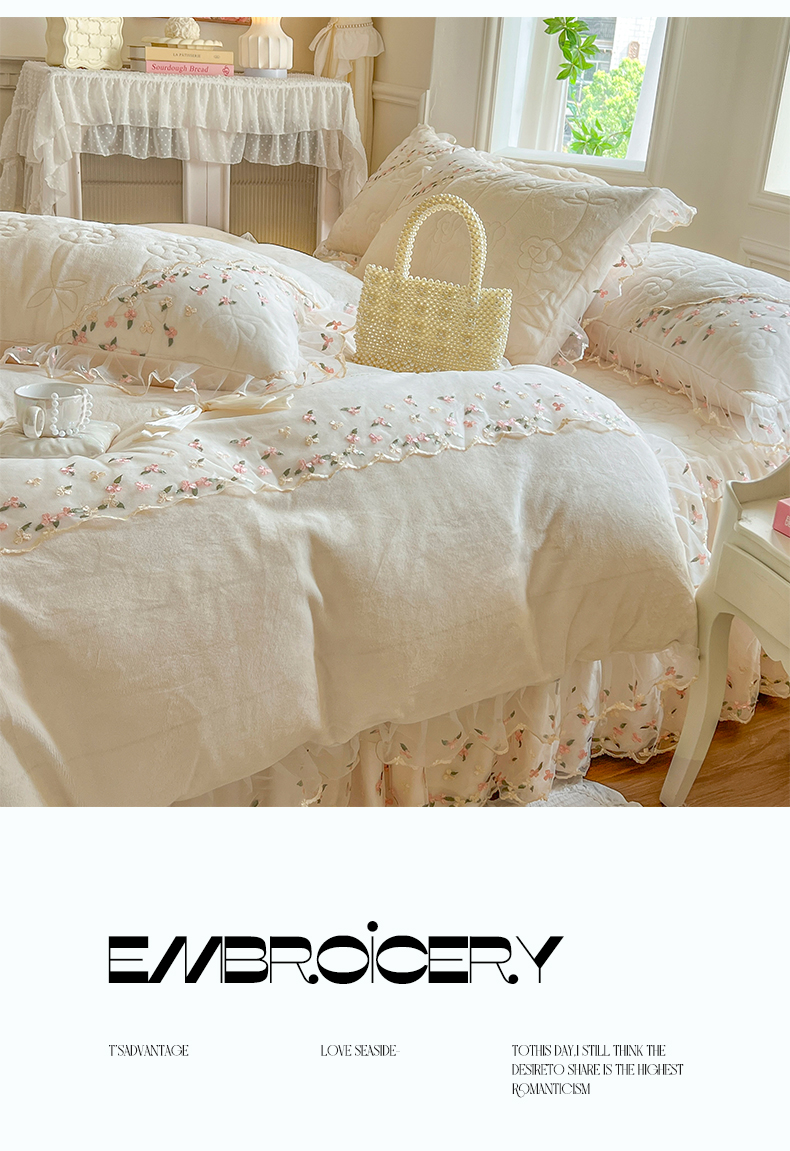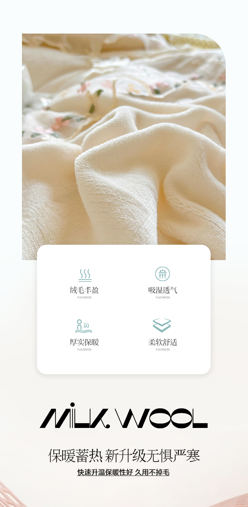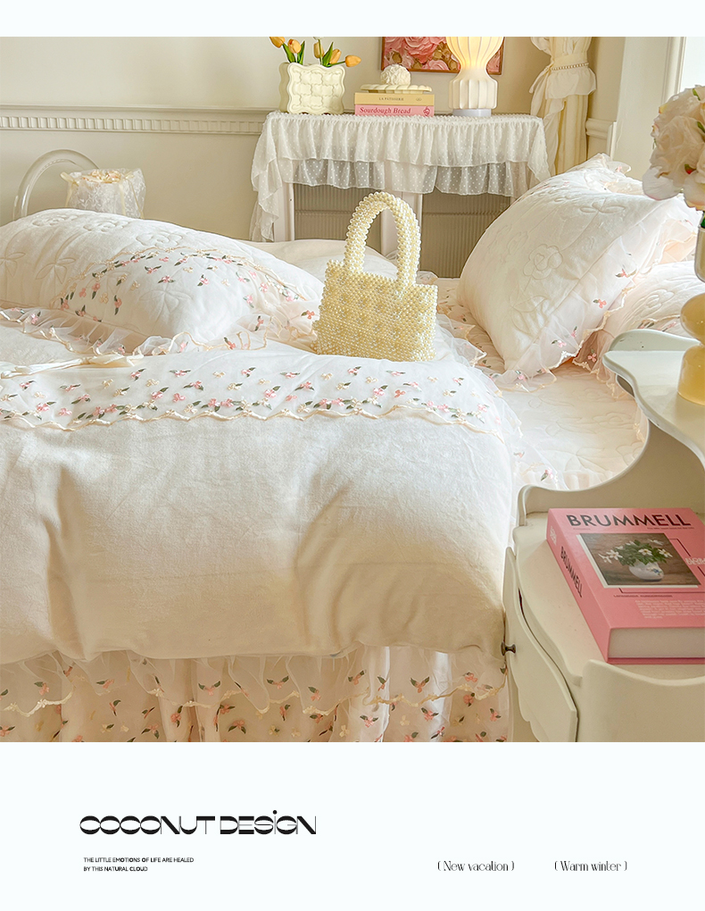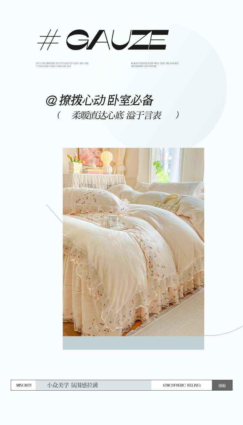 当前位置: 91家纺网 > 商品网购 > 床品套件 > 四件套 > 牛奶绒四件套 > 网红馆(ck家纺) 2025新款加厚保暖高克重牛奶绒蕾丝花边床裙款恬星系列四件套 恬星-香草白