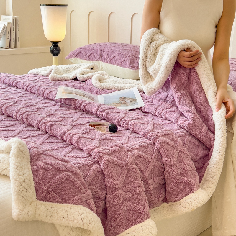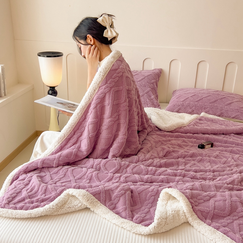 希廷顿 2024新款高克重双层加厚塔芙绒毛毯 麻花-香芋紫