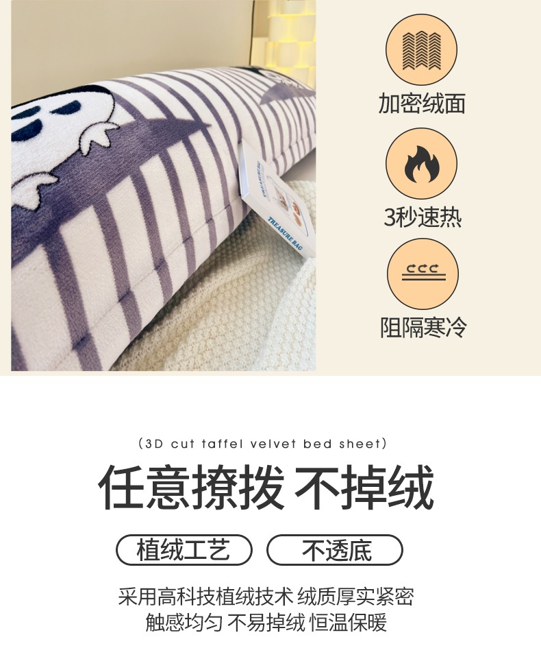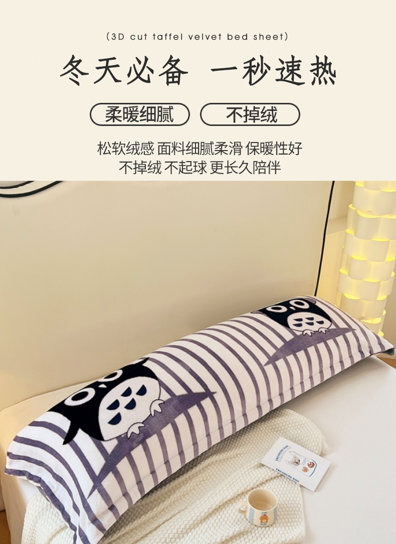 商品名称:梦舒羽 2025新款冬季法莱绒枕套牛奶绒1.5m枕头套双人珊瑚绒枕芯套 甜蜜的爱