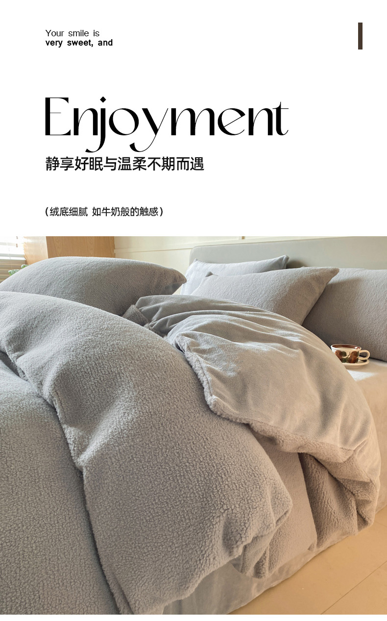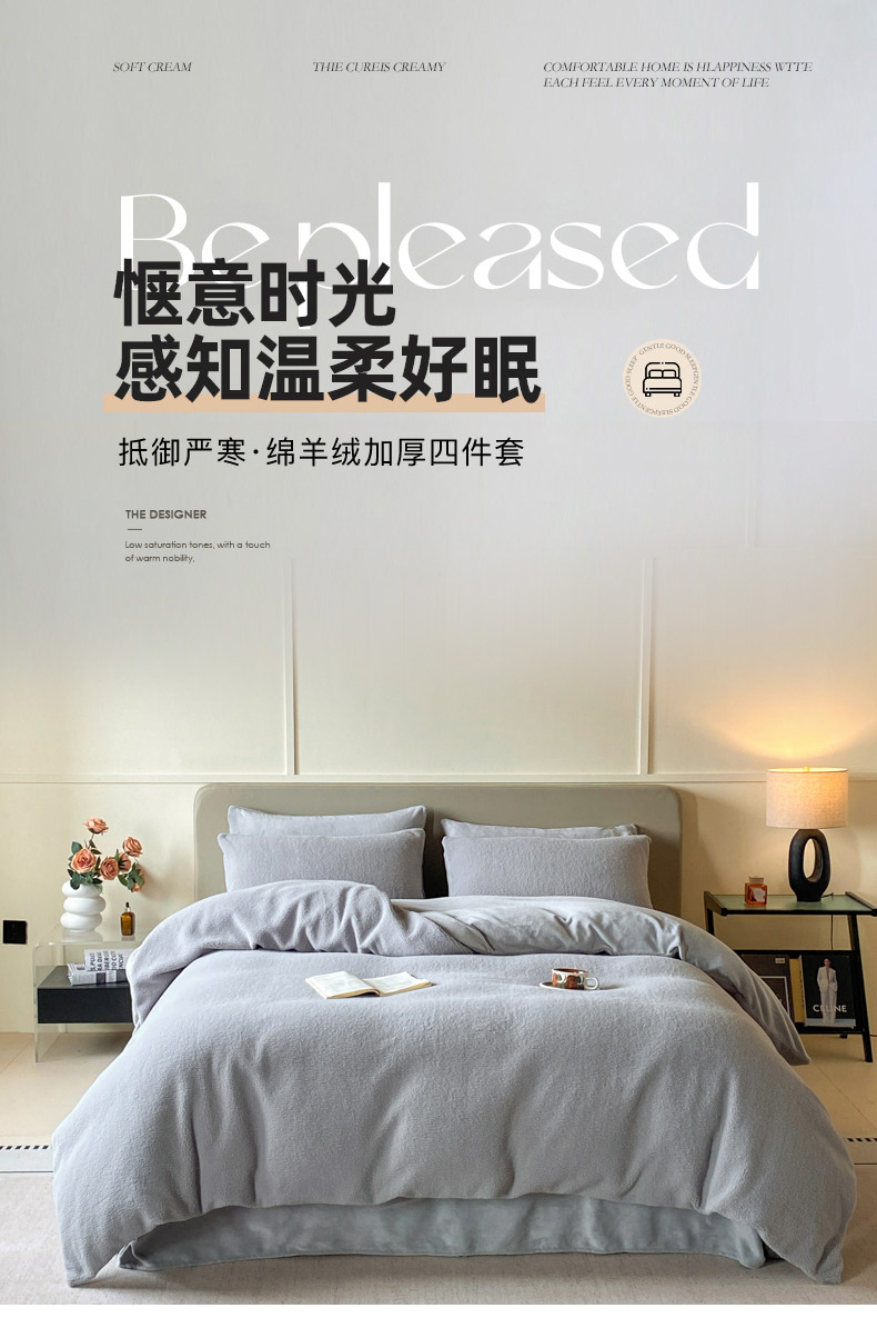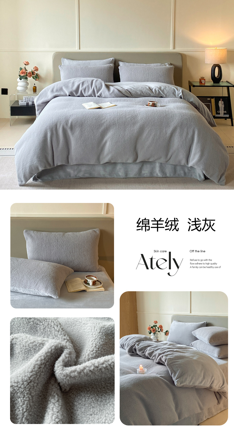 当前位置: 91家纺网 > 商品网购 > 床品套件 > 四件套 > 其它四件套 > 万盛家纺 2025新款棉羊绒加厚四件套 绵羊绒浅灰