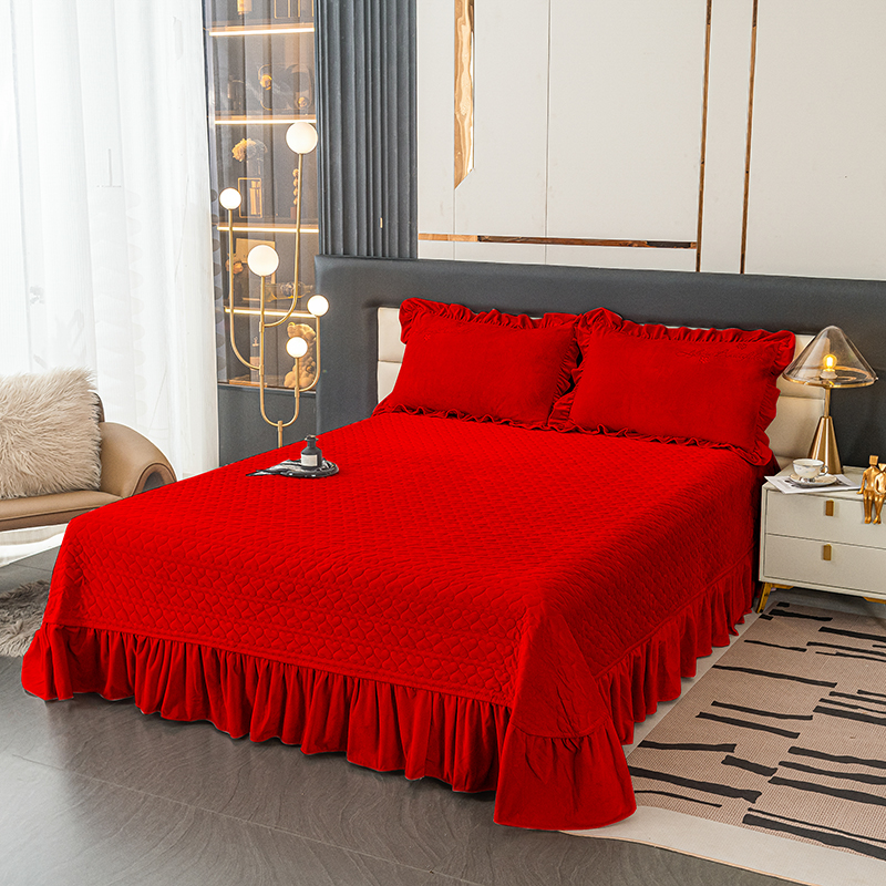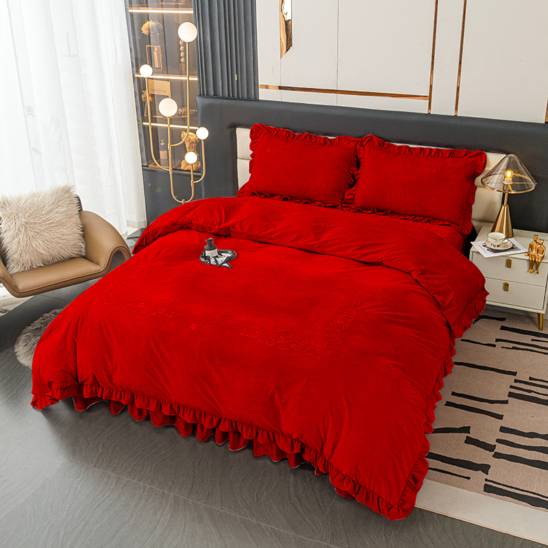 商品名称:乐嘉盈 2025新款纯色刺绣床盖款牛奶绒四件套-安然系列 安然-大红