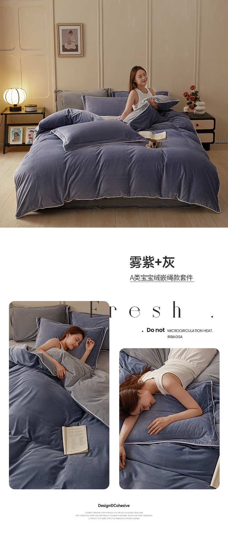 澳梵家居 澳梵家居 2024新款A类宝宝绒嵌绳款四件套--【雅致系列】 雾紫+灰