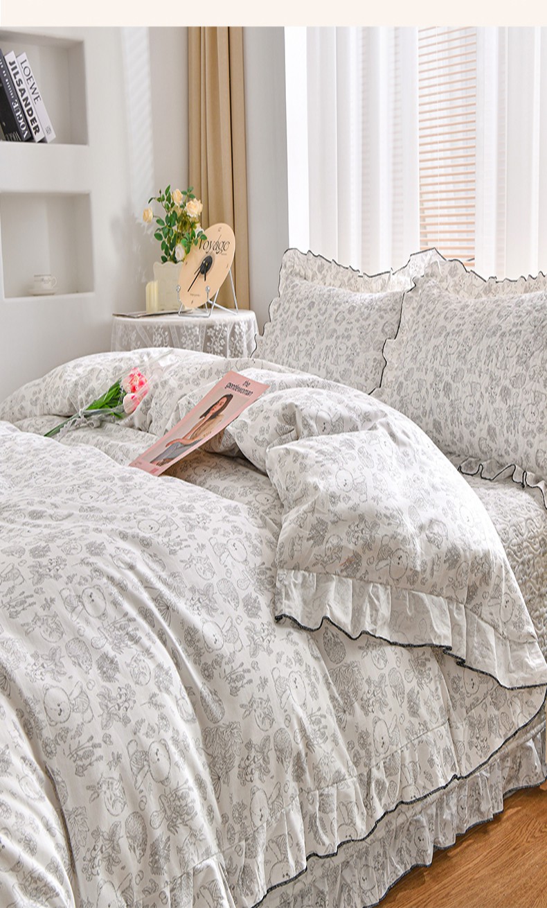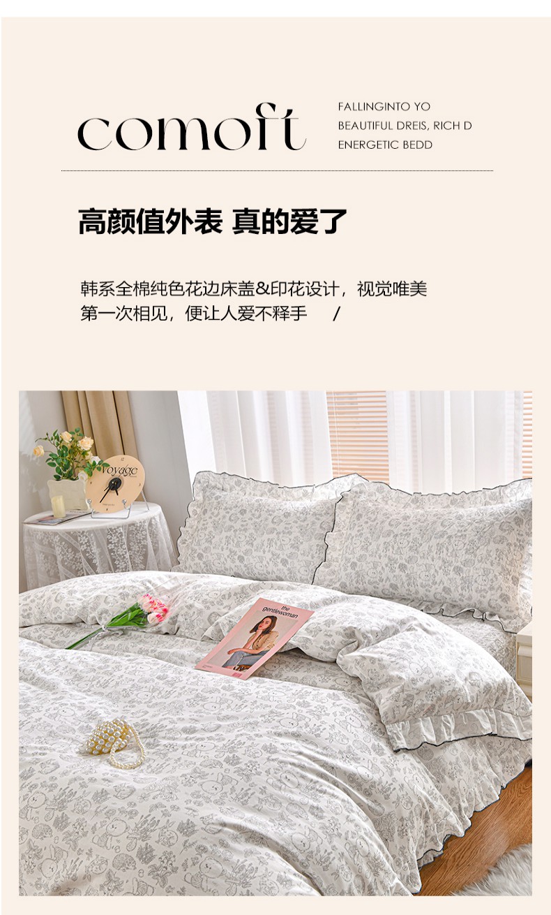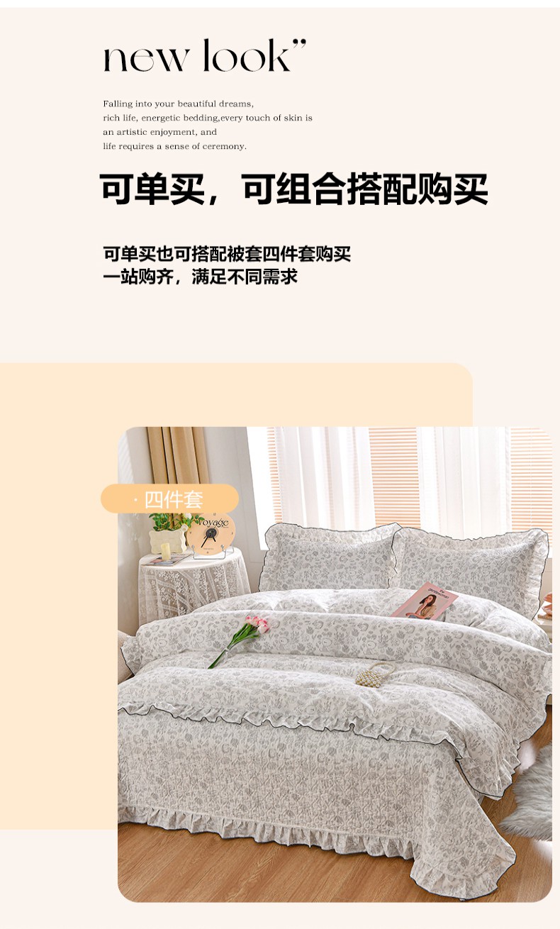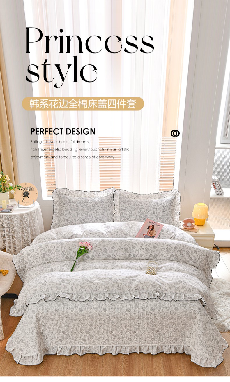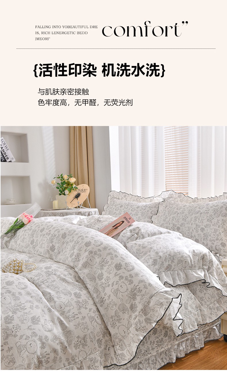 (总)梦精灵家纺 2025新款韩系花边全棉床盖四件套,布朗熊,欢乐熊,浆果小兔,爱薇儿,畅游春园,精灵兔,紫葡萄,萌兔寻香,青丝花带