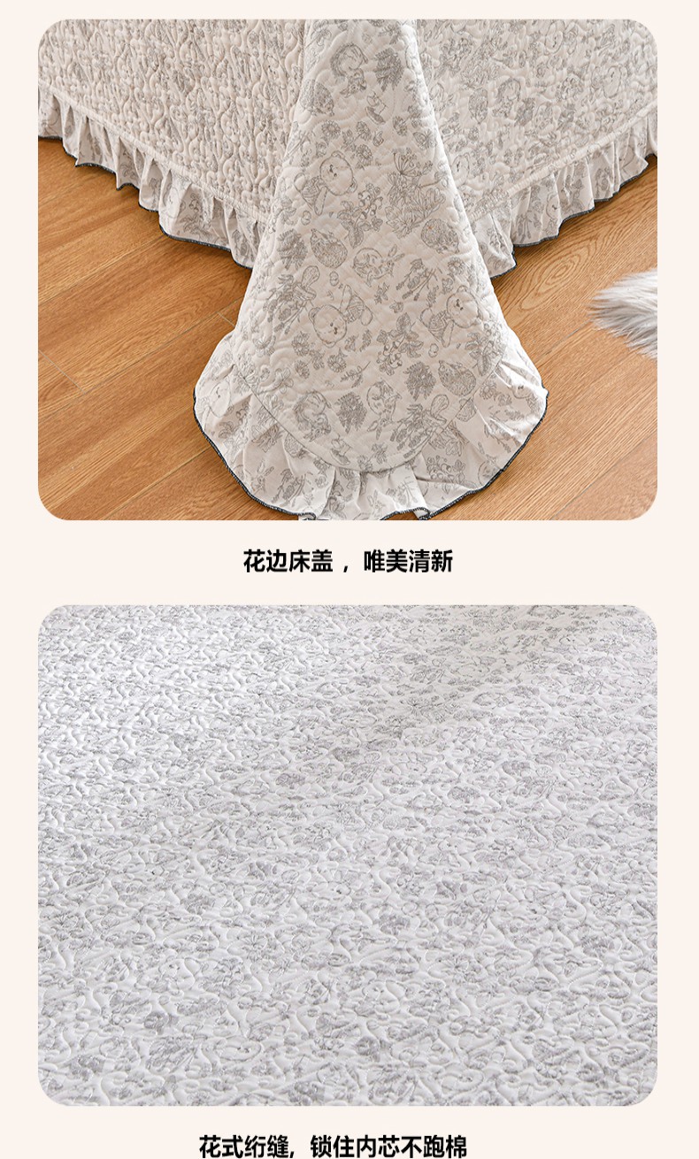 商品名称:2025新款韩系全棉花边款单床盖 布朗熊