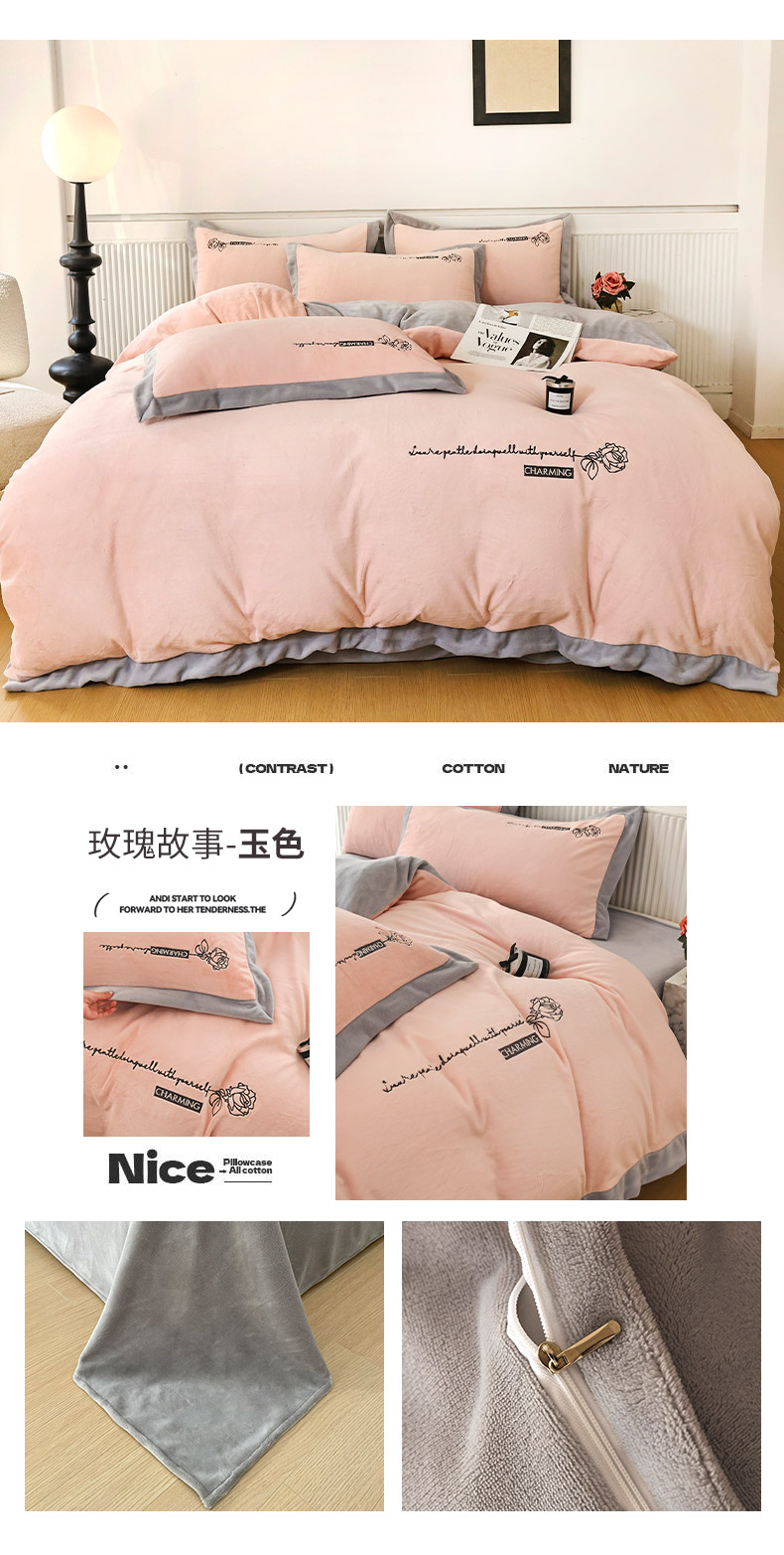 (总)大渔生活 2025新款牛奶绒刺绣四件套-玫瑰故事,玫瑰故事-白色,玫瑰故事-豆绿,玫瑰故事-灰色,玫瑰故事-卡其,玫瑰故事-皮粉,玫瑰故事-玉色