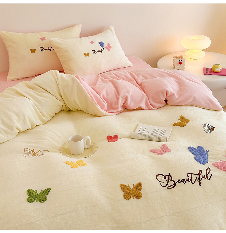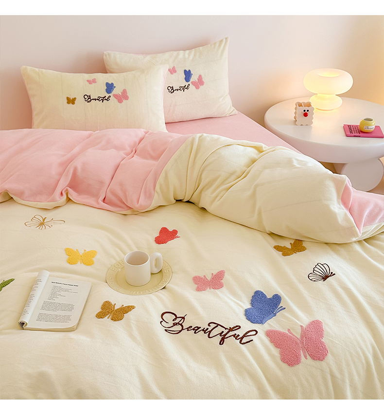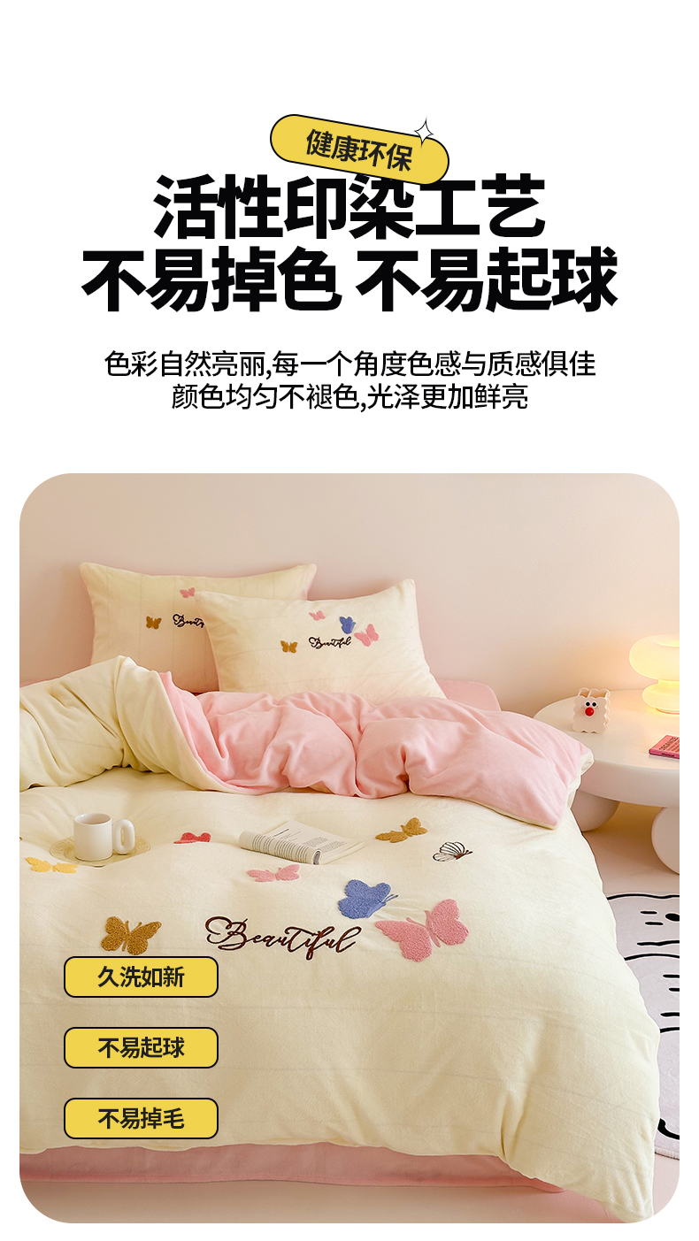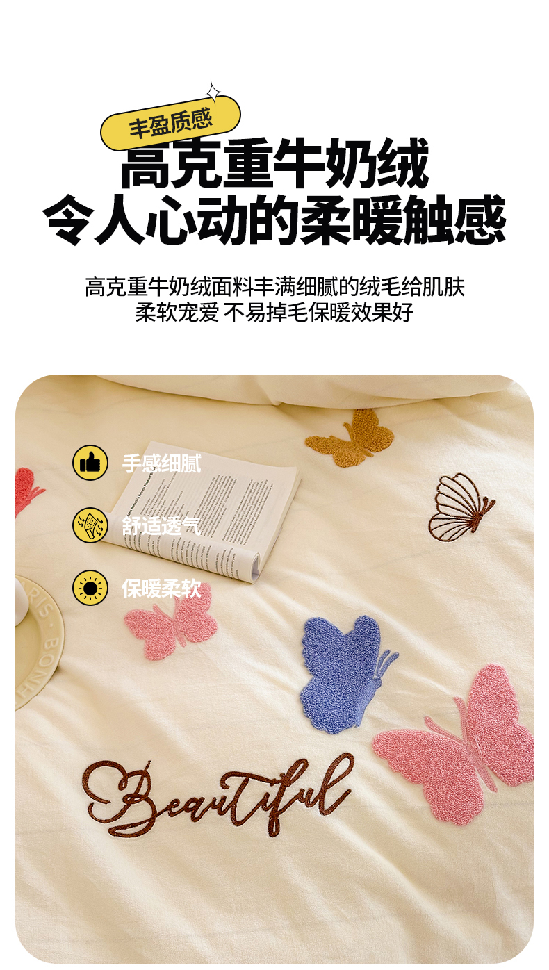 (总)沐棉 2024新款纯色牛奶绒毛巾绣款四件套,彩色蝴蝶,嘟嘟鱼,开心派对-咖,开心派对-兰,快乐圣诞-绿,快乐圣诞-米,熊猫-灰,熊猫-米