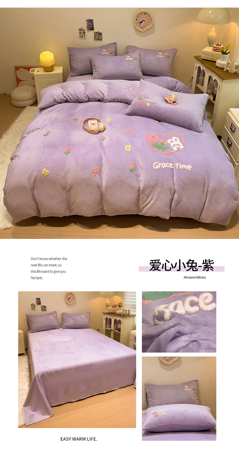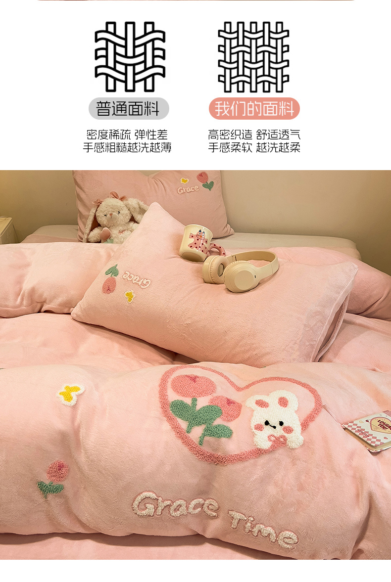 当前位置: 91家纺网 > 商品网购 > 床品套件 > 四件套 > 牛奶绒四件套 > (总)梦之岛 2024新款ins加厚卡通爱心小兔毛巾绣牛奶绒四件套