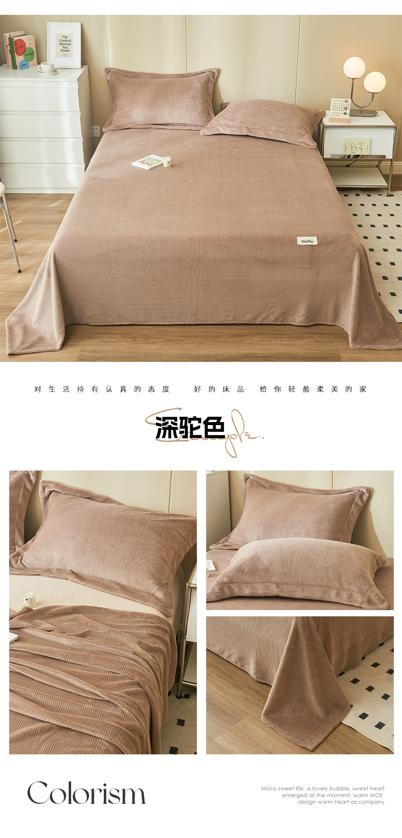 吾诺家居 2024新款秋冬华夫格牛奶绒单床单系列 深驼色