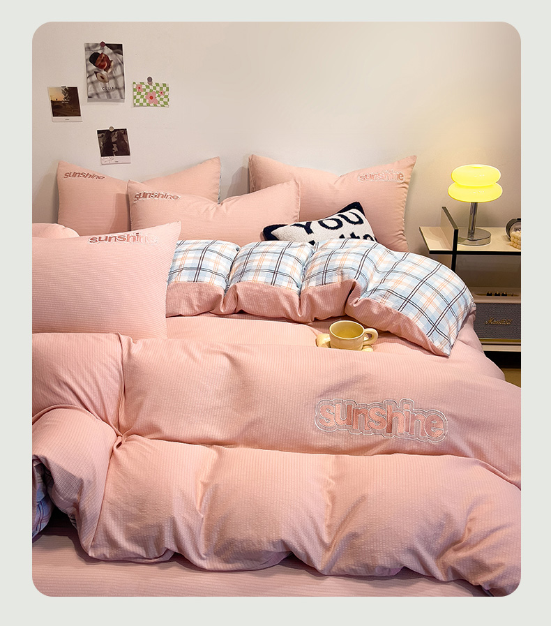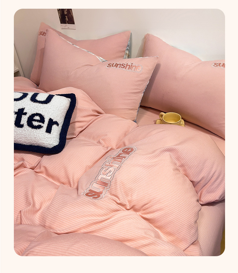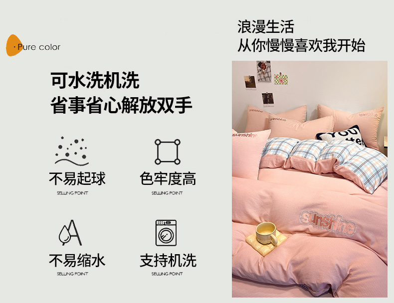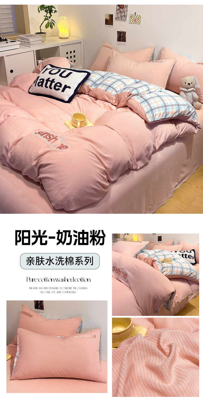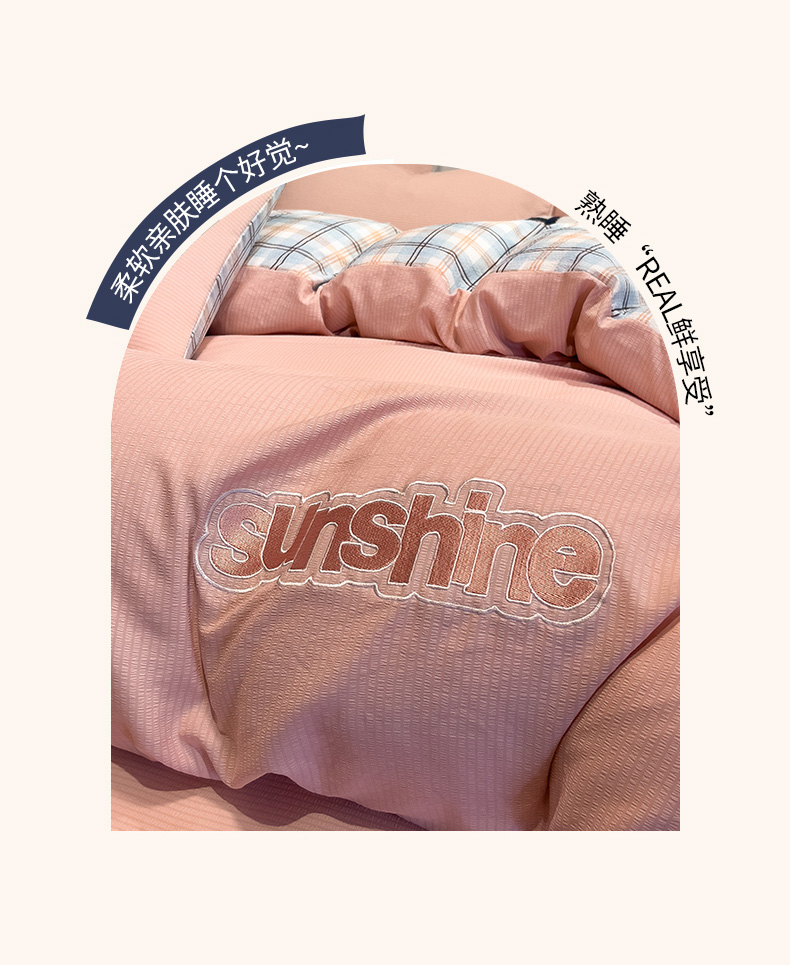 当前位置: 91家纺网 > 商品网购 > 床品套件 > 四件套 > 水洗棉四件套 > 眠帛家居 2024新款水洗棉磨毛提花刺绣四件套阳光系列 阳光-奶油粉