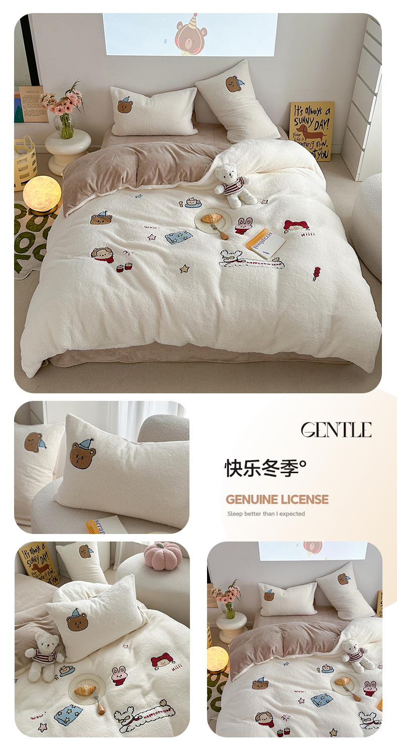 商品名称:美乐迪家纺 2024新款高克重绵羊绒毛巾绣四件套 快乐冬季