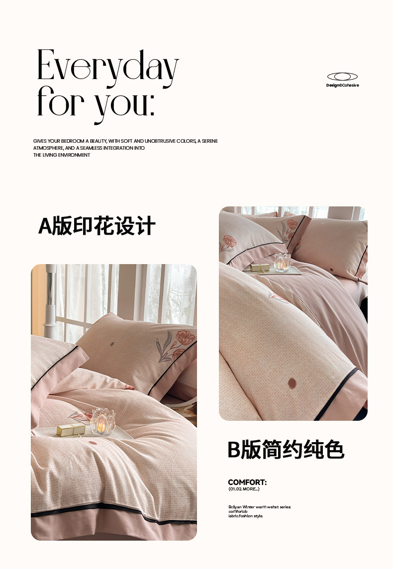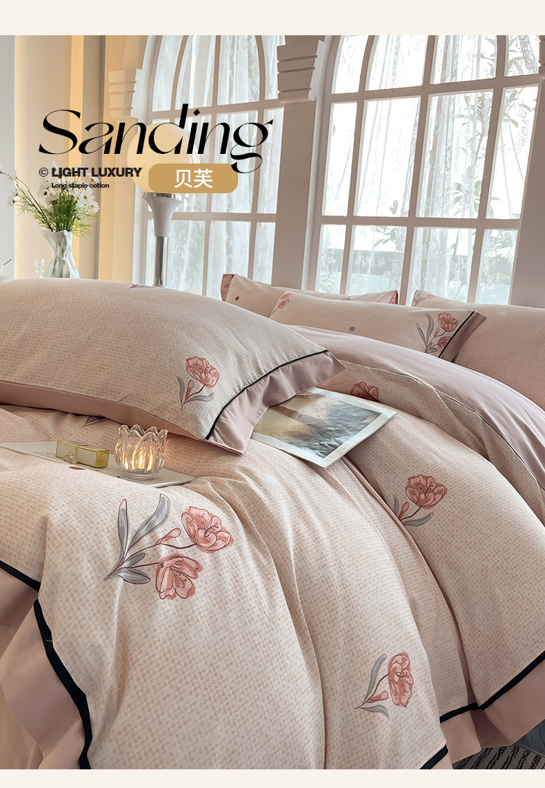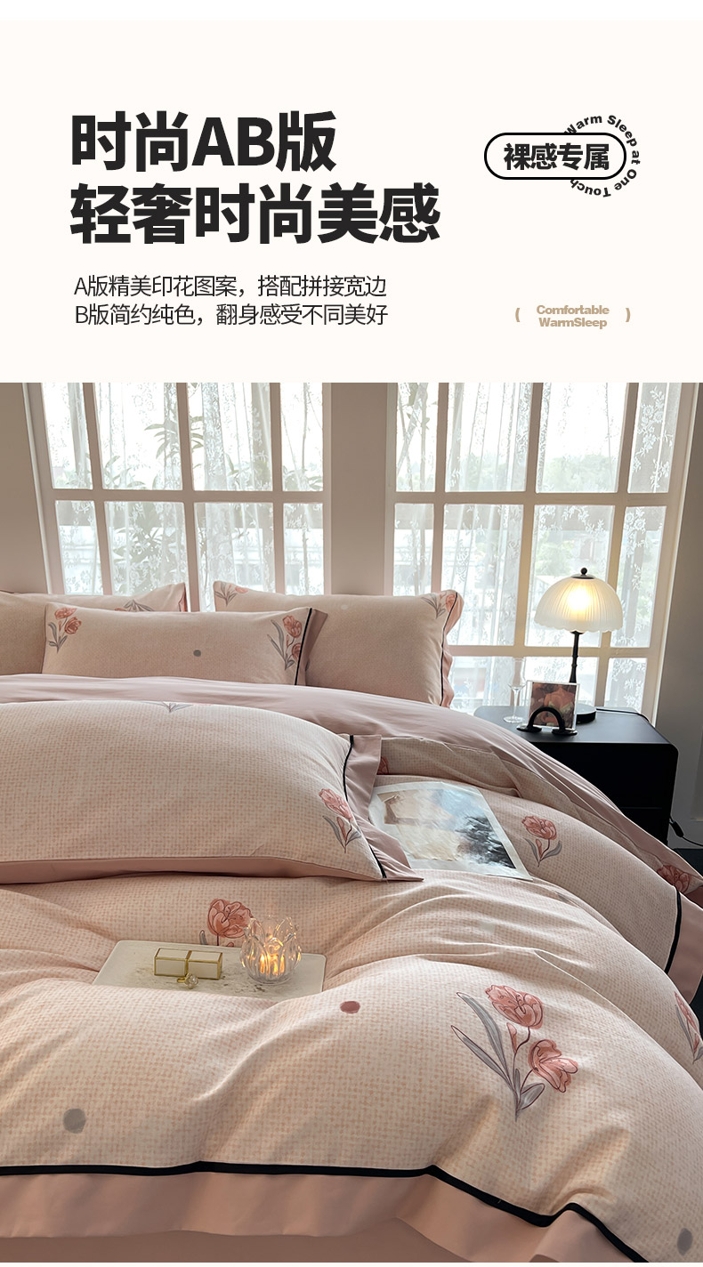 商品名称:秋冬季A类母婴级加厚保暖四件套全棉纯棉轻奢风数码印花宽边款新疆棉床上用品贝芙