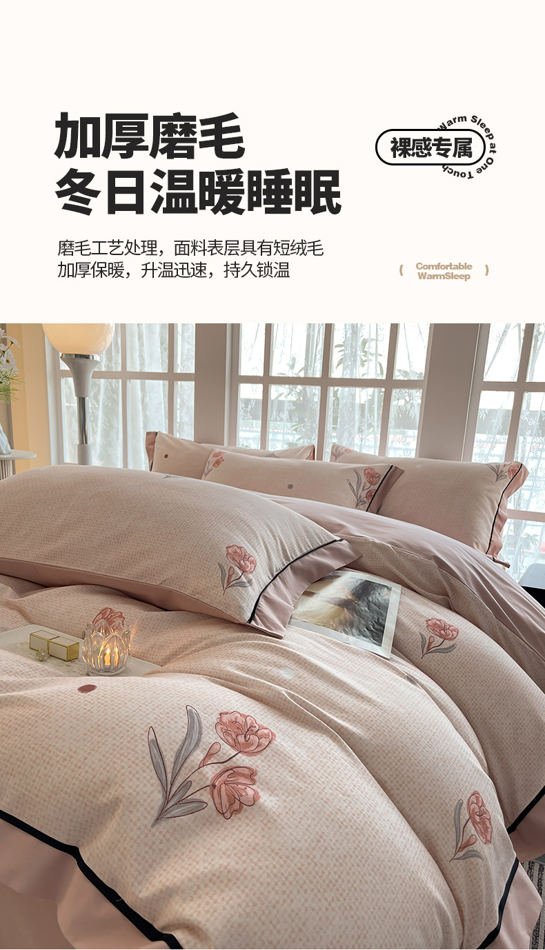 (总)乔利卡沃 2025秋冬新款轻奢高级感加厚保暖全棉纯棉磨毛重工刺绣四件套床上用品花间集,花间集-黛紫,花间集-红桃,花间集-慕蓝,花间集-清绿,花间集-柔杏,花间集-颜粉