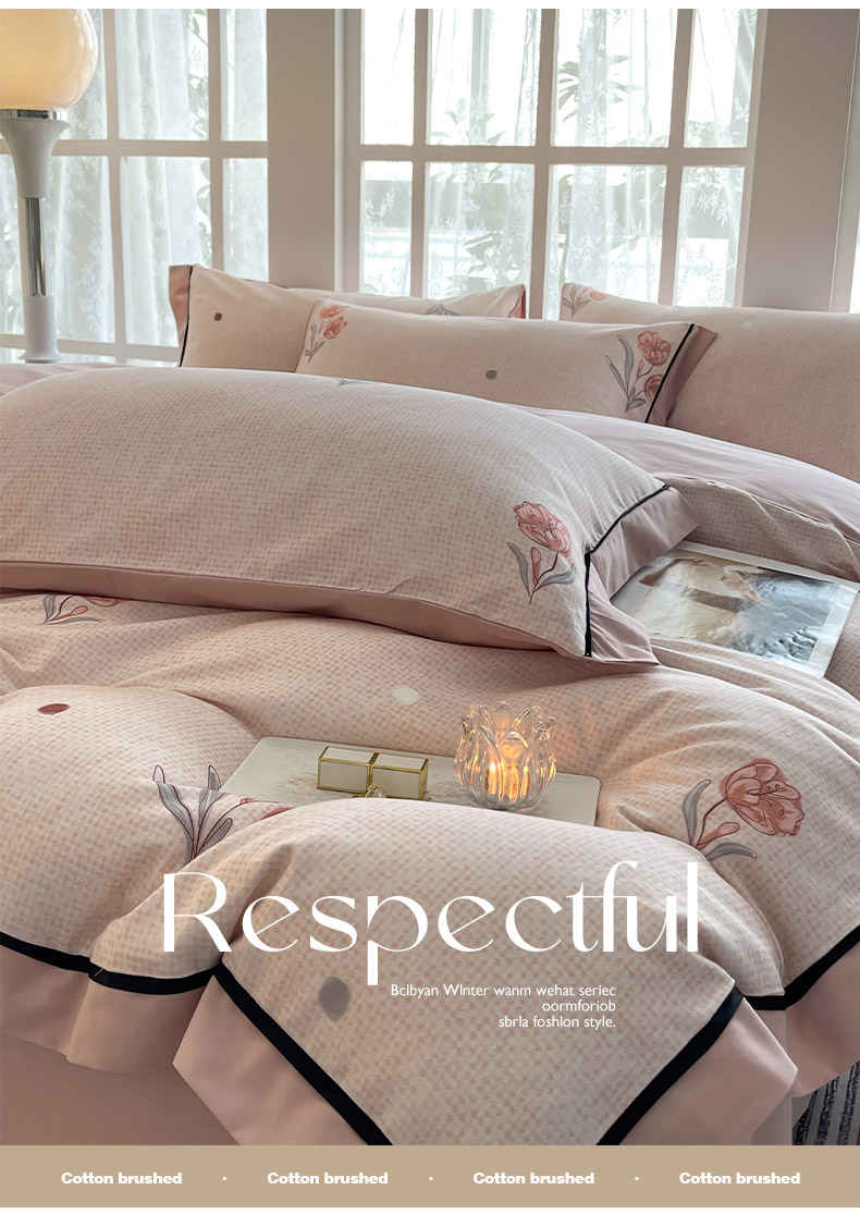 秋冬季A类母婴级加厚保暖四件套全棉纯棉轻奢风数码印花宽边款新疆棉床上用品贝芙