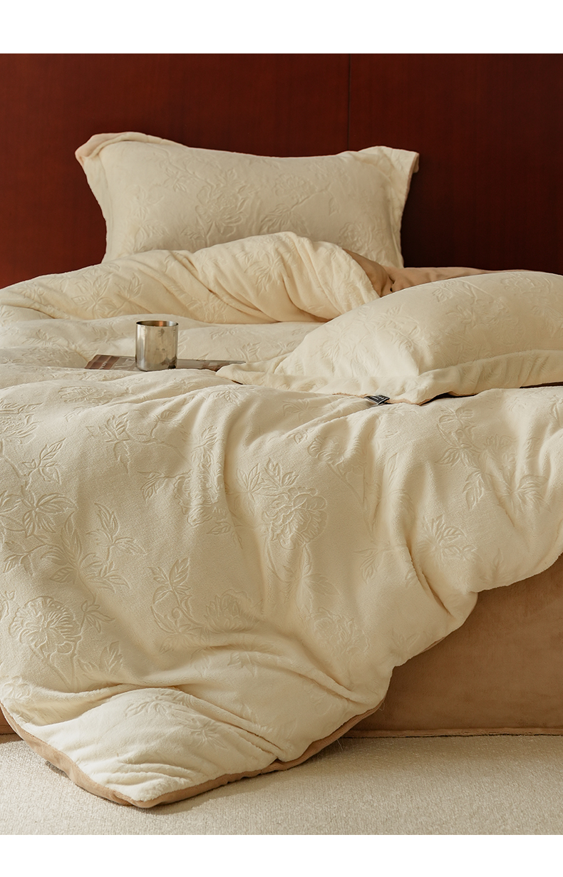 商品名称:三味舒屋 2025新款雕花牛奶绒四件套香榭丽系列 香榭丽奶白