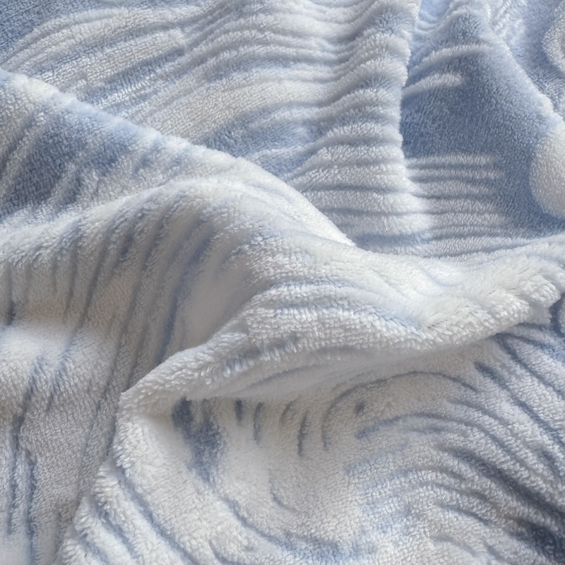 商品名称:梦莱斯 2024新款雕花牛奶绒四件套 浪花-天空蓝