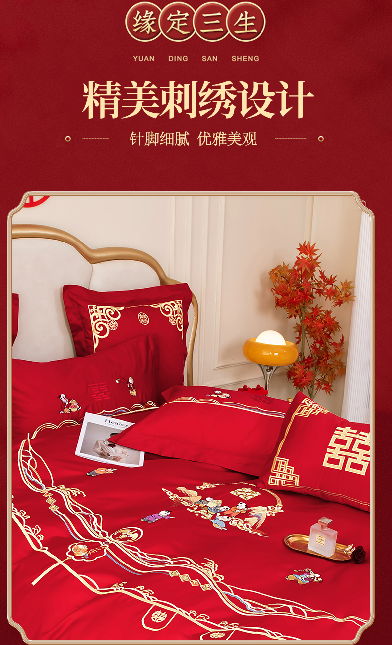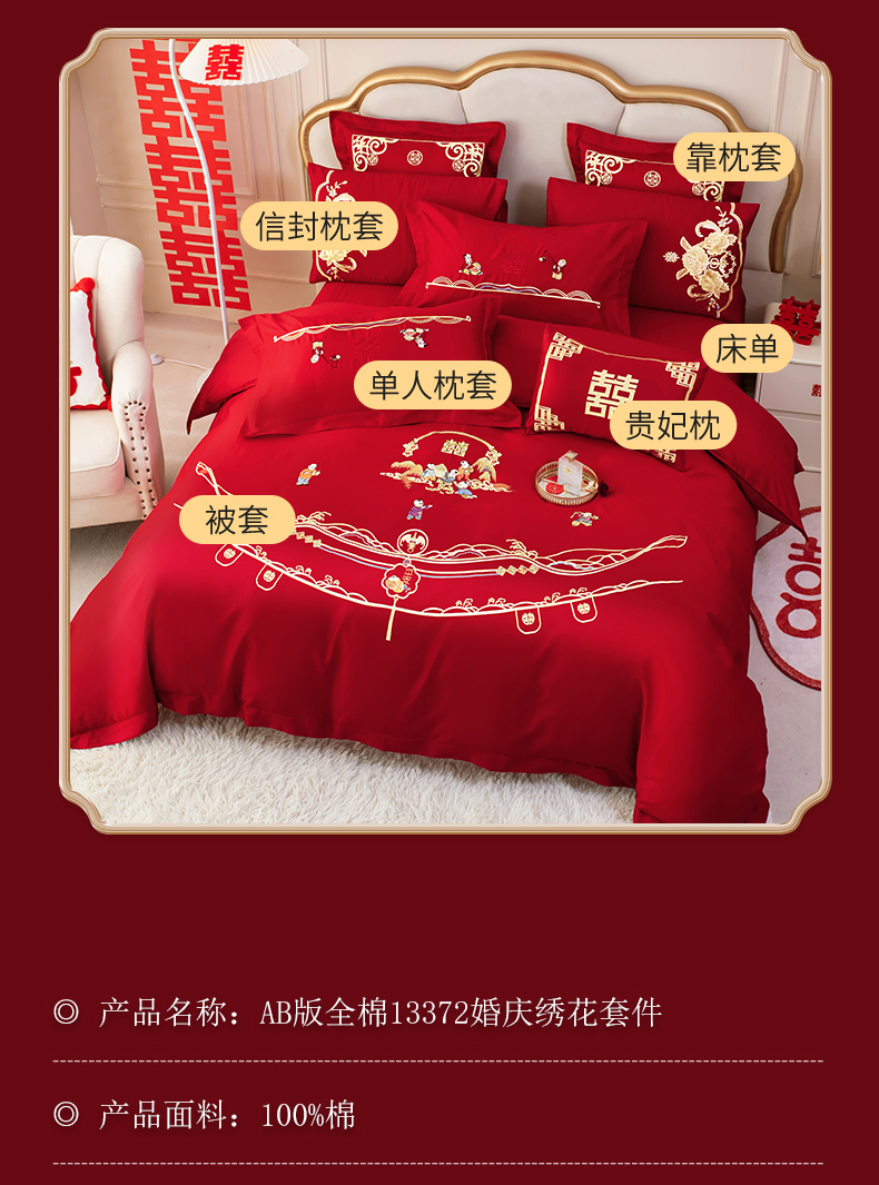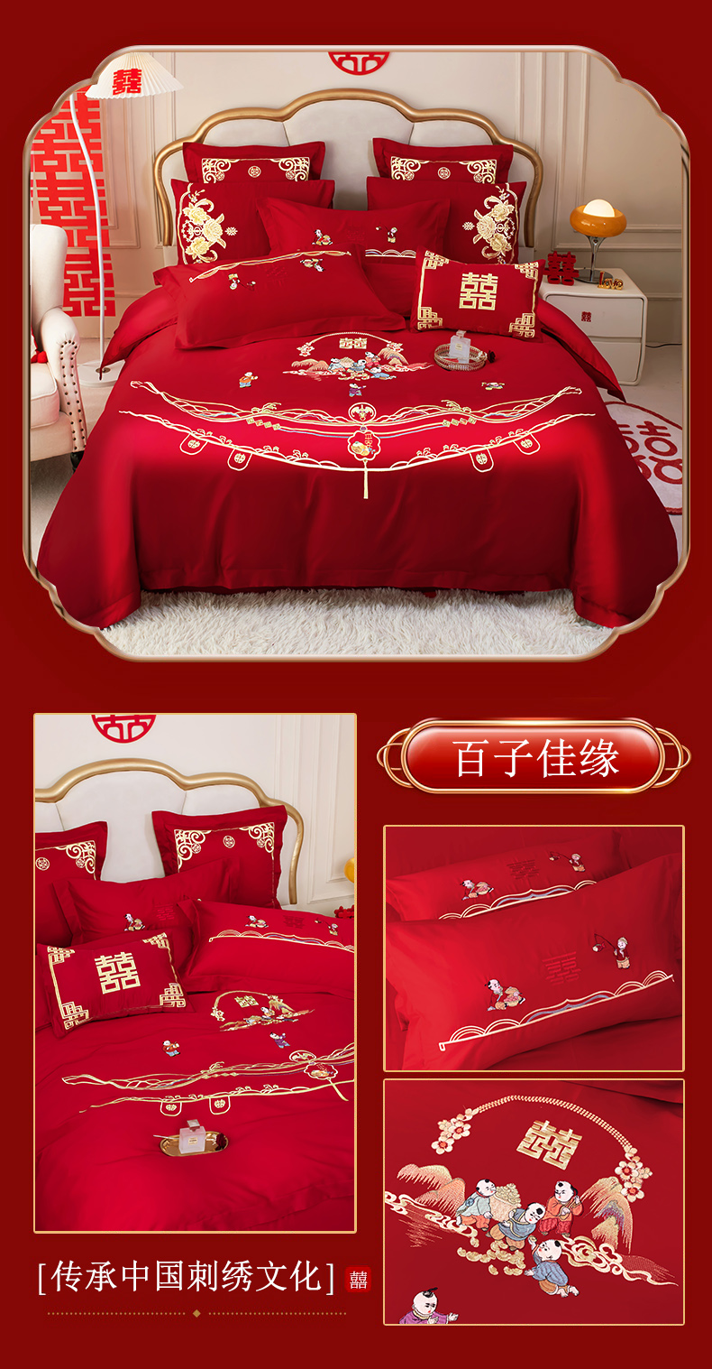 当前位置: 91家纺网 > 商品网购 > 床品套件 > 四件套 > 婚庆四件套 > 千禧家纺 2025新款全棉13372婚庆绣花系列百子佳缘
