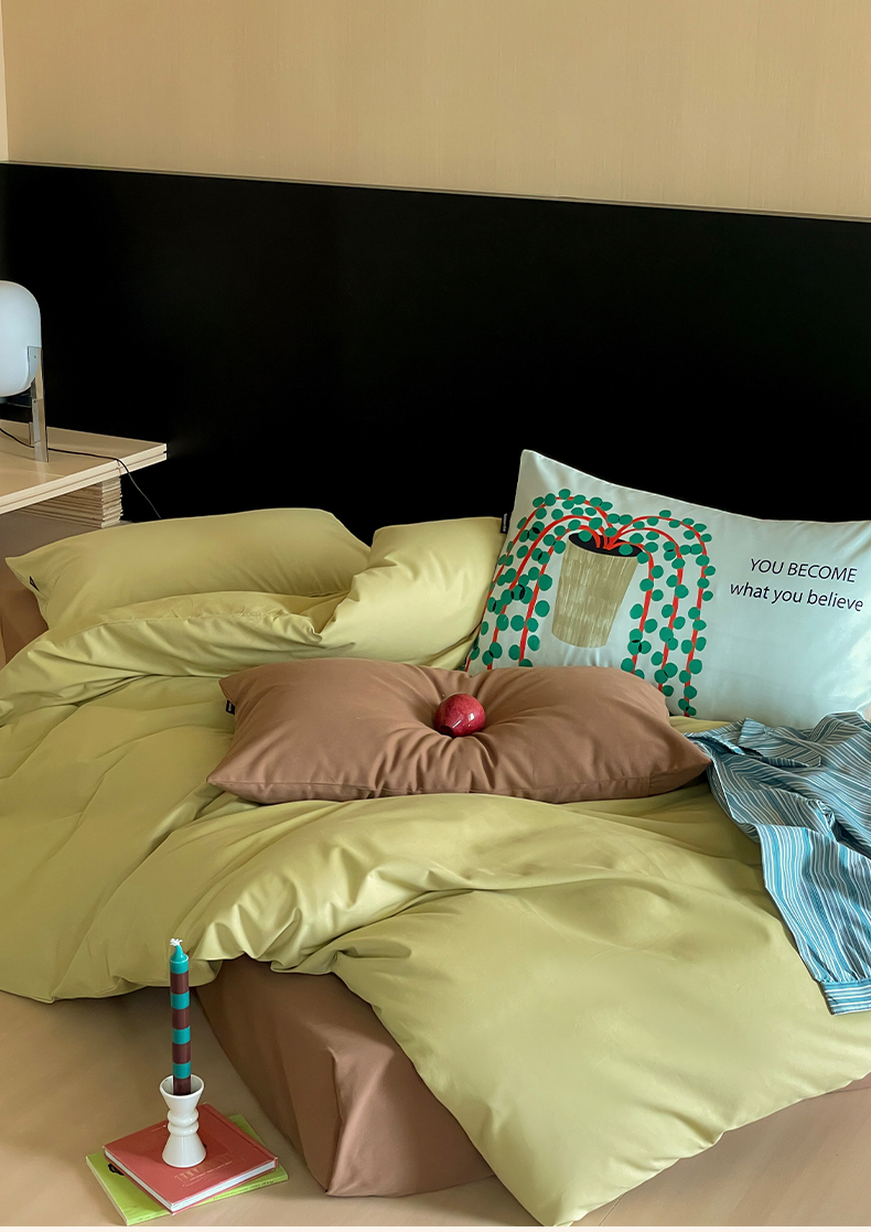 圆岛家纺 2024秋冬新款纯色孟菲斯博主风时尚全棉磨毛五件套 尼罗绿拼深咖