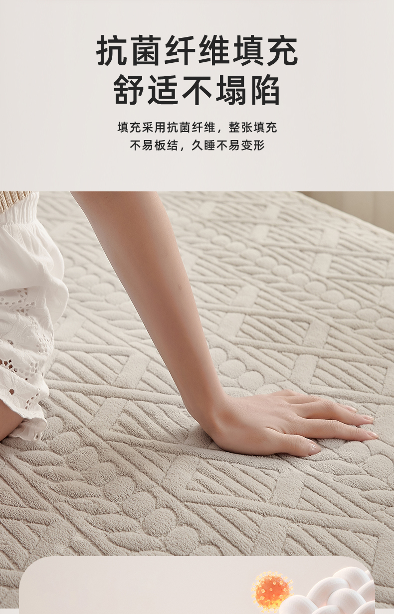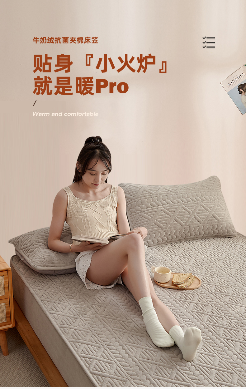商品名称:布卢姆床垫 2025新款A类加厚牛奶绒抗菌床笠--麦香系列 麦香-低度灰