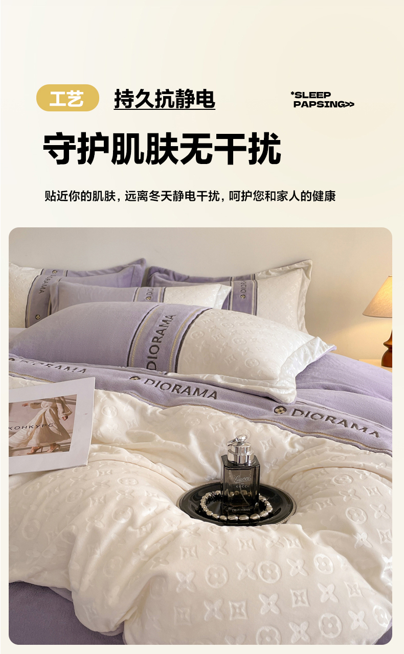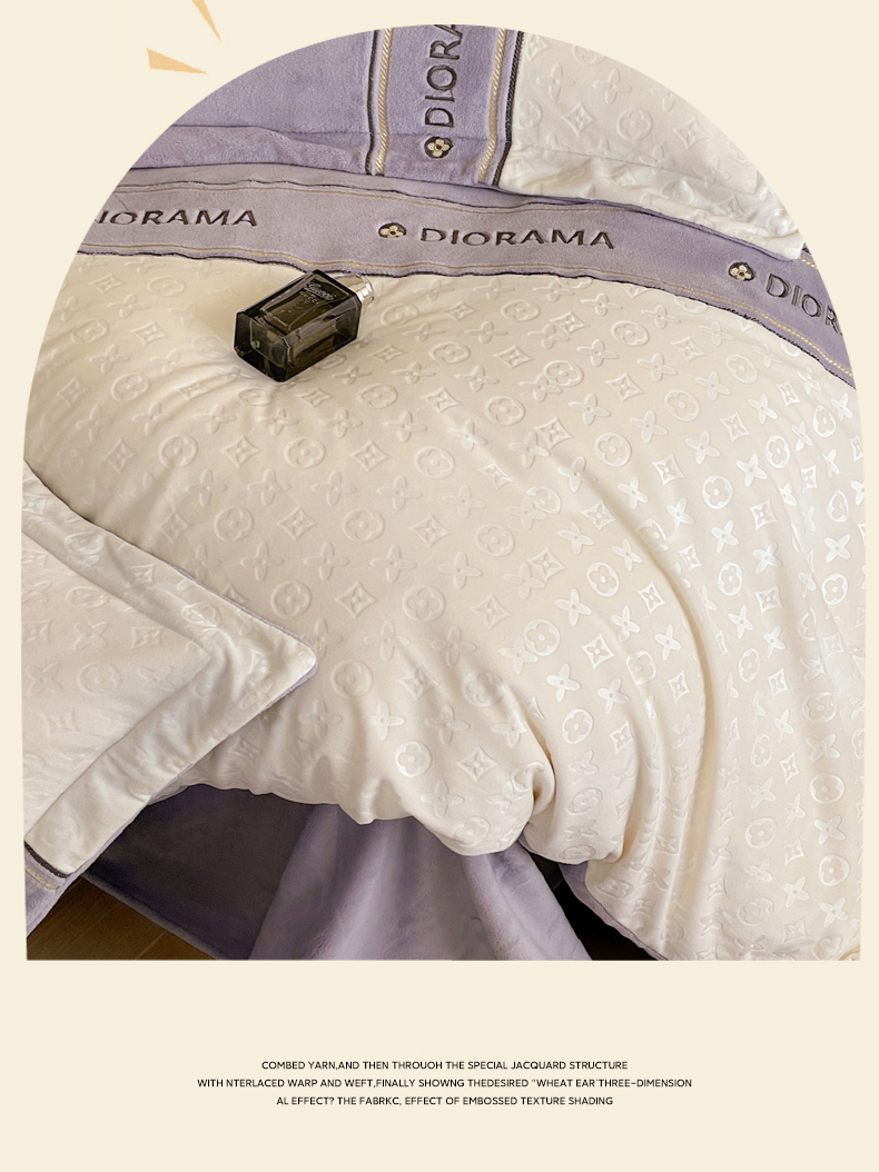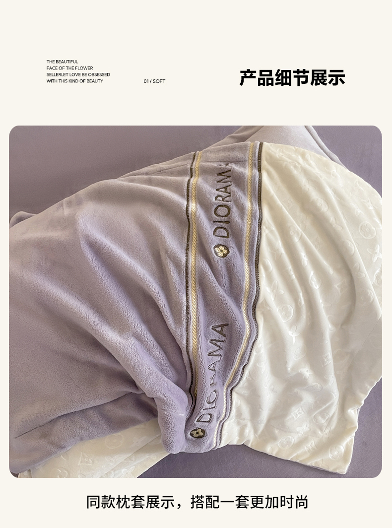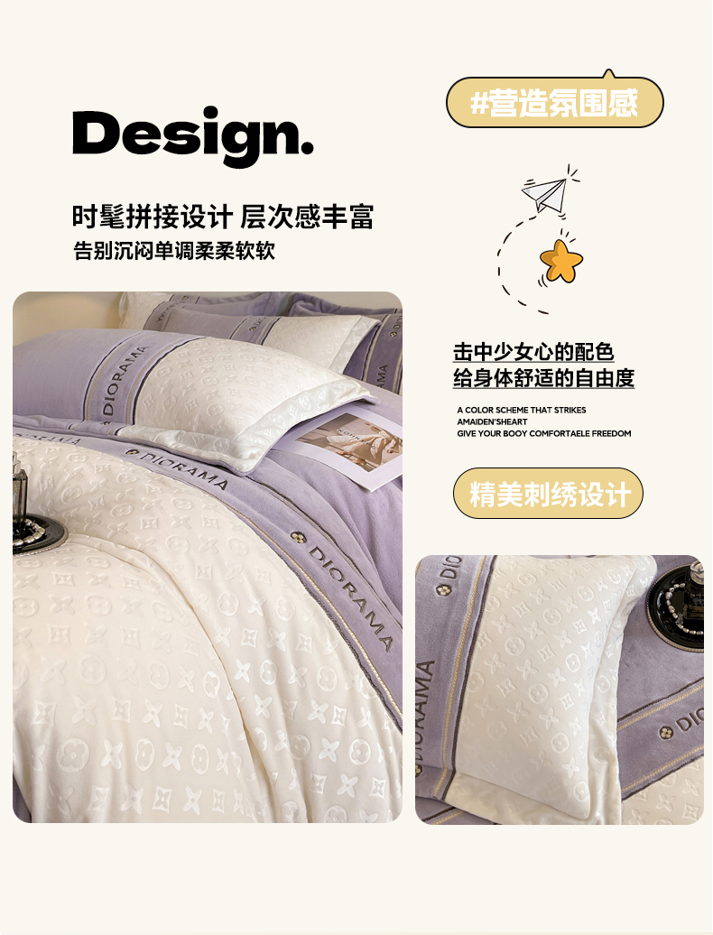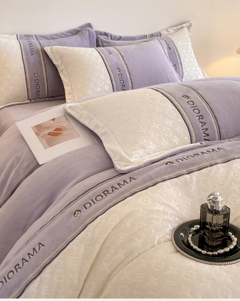 商品名称:慕木家纺 2025新款牛奶绒路易刺绣拼接四件套 绒路易-熏衣紫