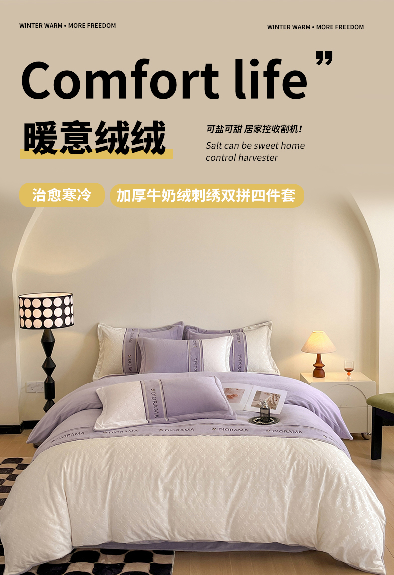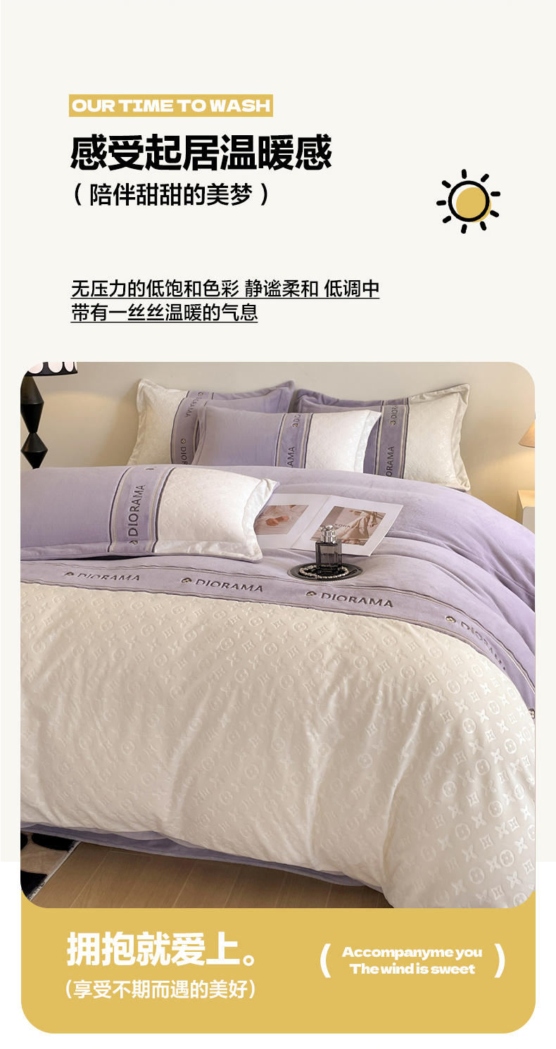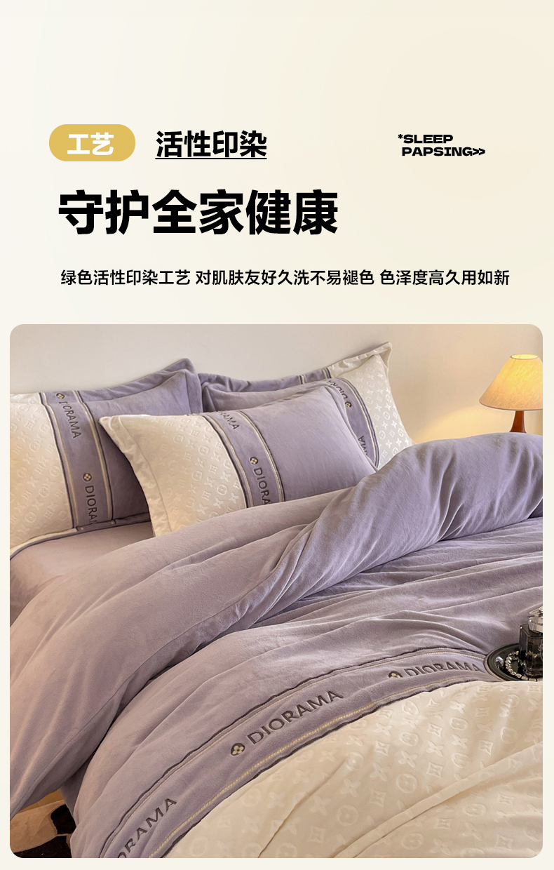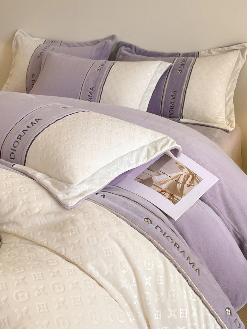 慕木家纺 2025新款牛奶绒路易刺绣拼接四件套 绒路易-熏衣紫