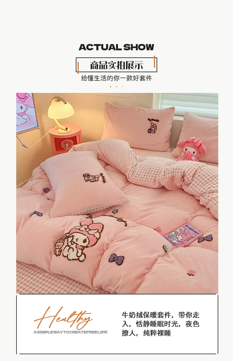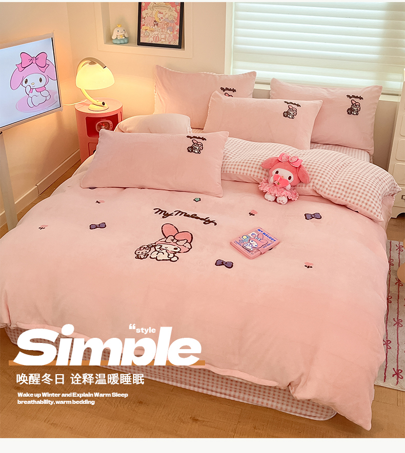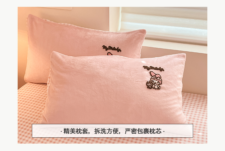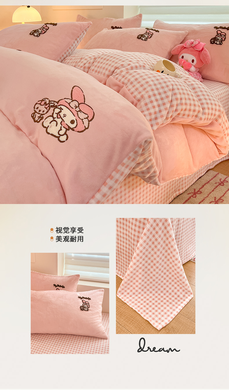 当前位置: 91家纺网 > 商品网购 > 床品套件 > 四件套 > 牛奶绒四件套 > 金爱家 2024新款正版三丽鸥授权毛巾绣刺绣工艺加厚牛奶绒系列四件套 绒毛巾绣-粉格美乐蒂
