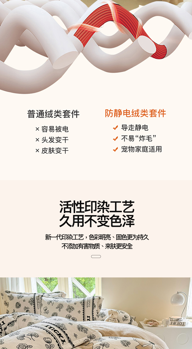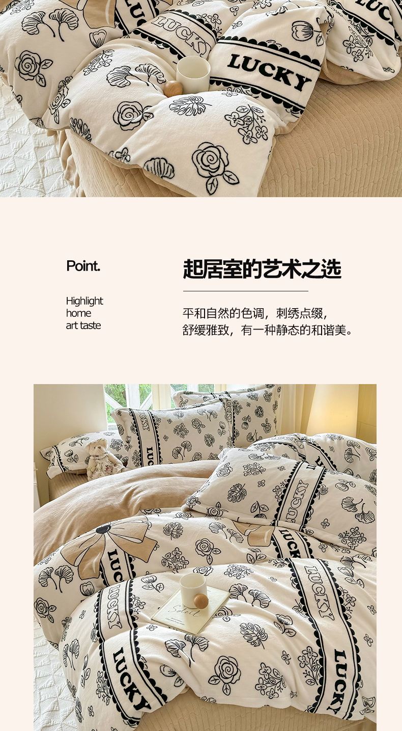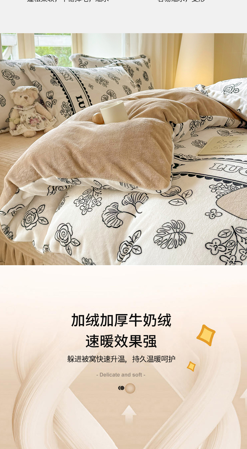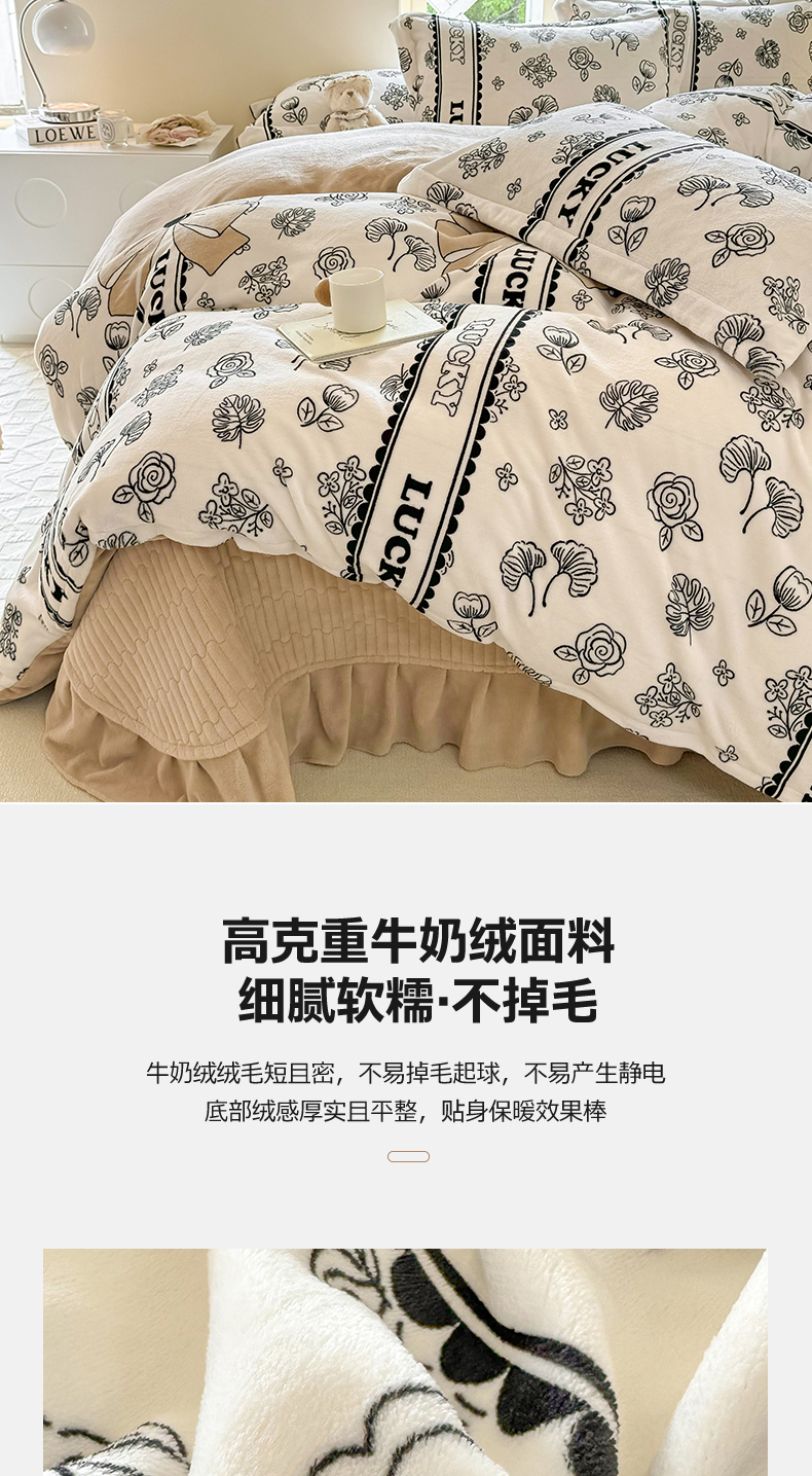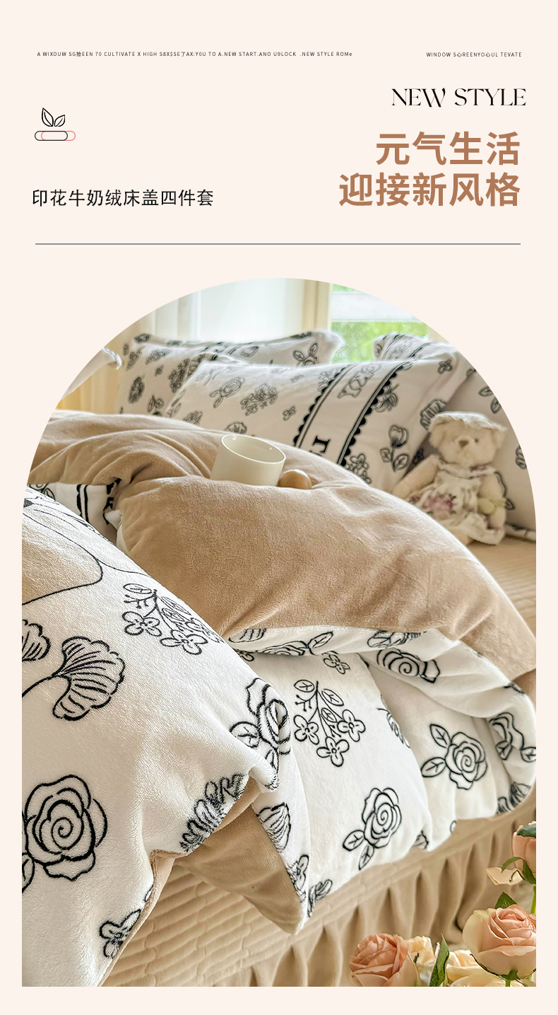 商品名称:富之航 2024新款印花牛奶绒床盖四件套 沐颜