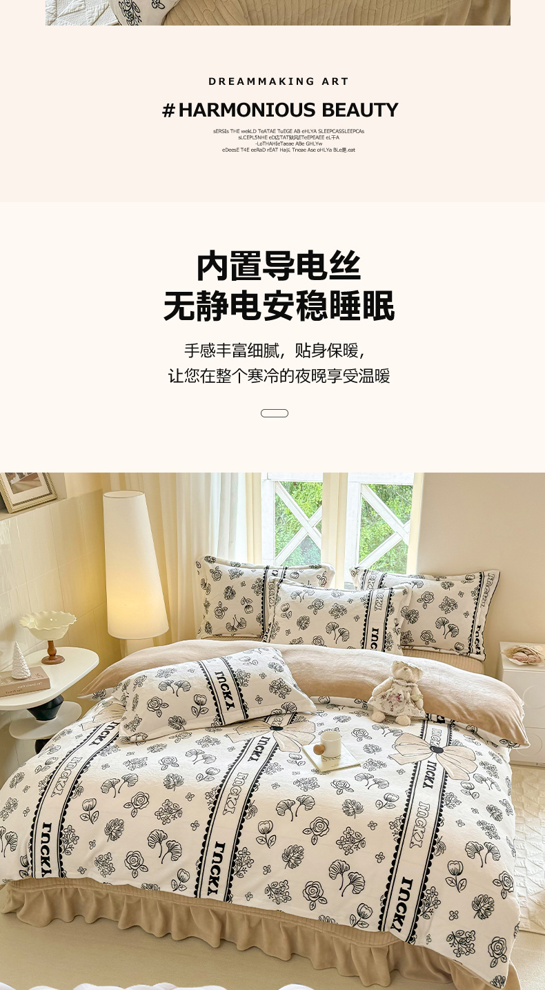 (总)富之航家纺 2025新款小香风赫本风ins风大牌韩版大花边轻奢牛奶绒四件套,蝶恋花,蝶栖,黑糖,楼桃,眠语,慕秋,叶叙,游园-白,游园-绿,紫萝