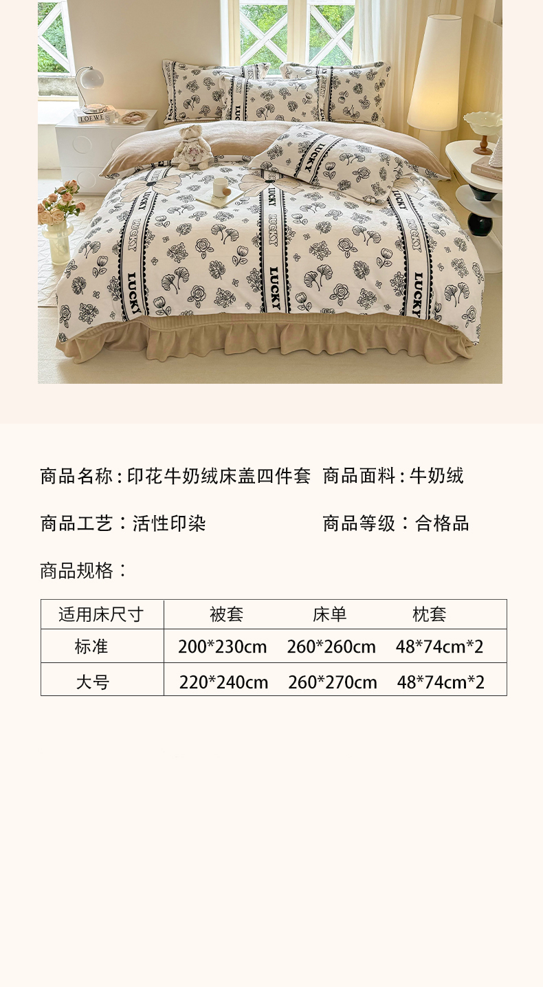 (总)富之航家纺 2025秋冬新款牛奶绒印花床盖四件套,豹纹咖,粉红结,公主城堡,花间梦,花栖礼,花妖,欢乐恐龙,结缘派对,快乐小女孩,满心欢喜,甜蜜樱桃,甜心,小格熊,幸运猫咪,幸运时光,织梦空间