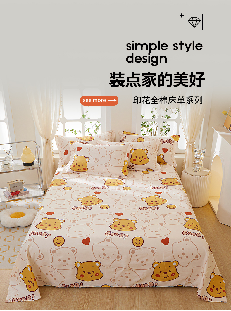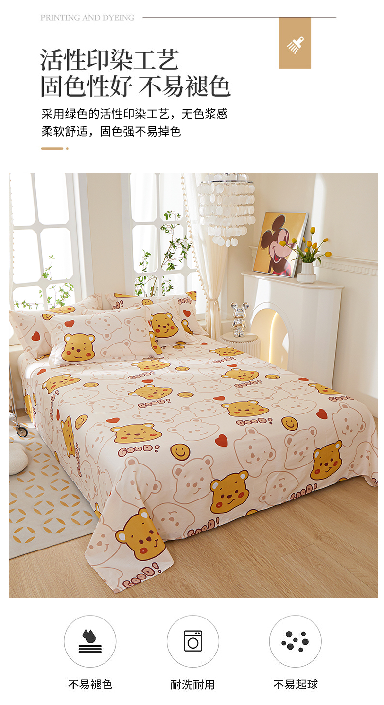 商品名称:钰伶 2025新款全棉简约12868纯棉单床单欢乐萌熊A版