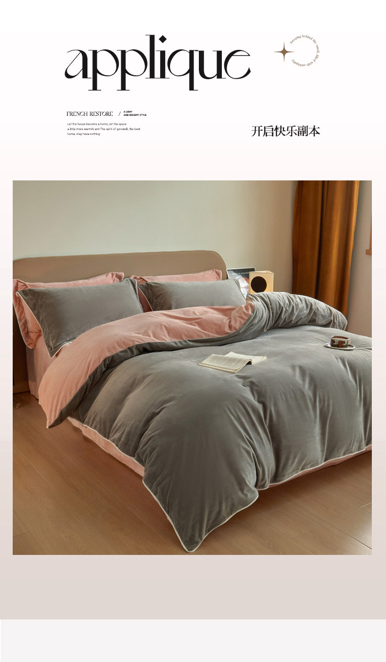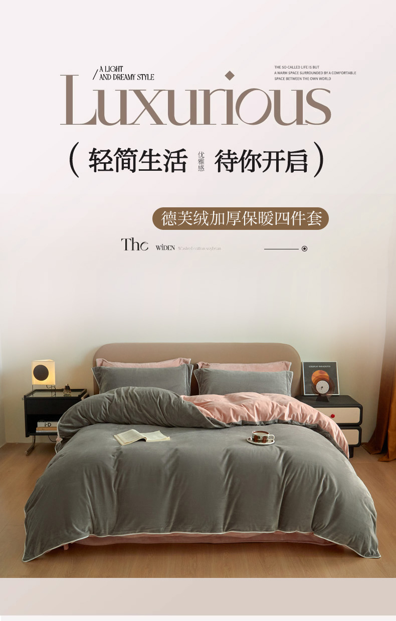 当前位置: 91家纺网 > 商品网购 > 床品套件 > 四件套 > 牛奶绒四件套 > 万盛家纺 2025新款德芙绒牛奶绒法莱绒水晶绒双拼四件套 咖灰-豆沙
