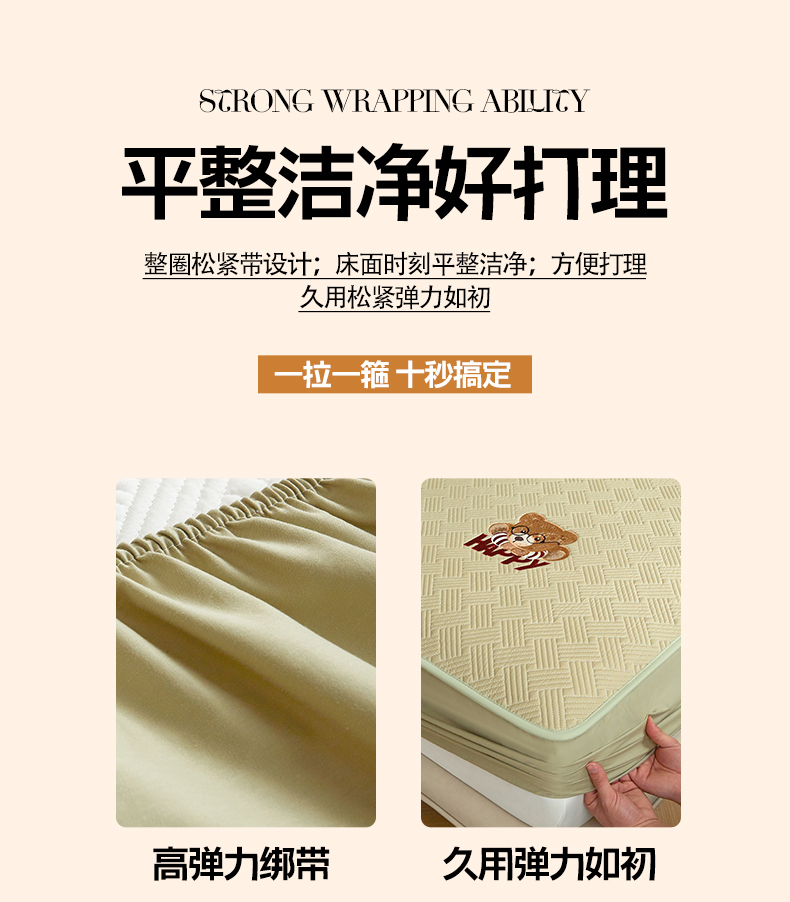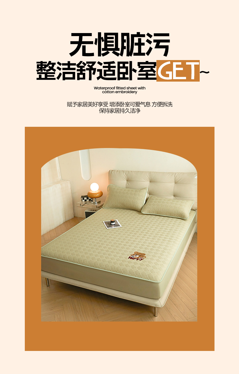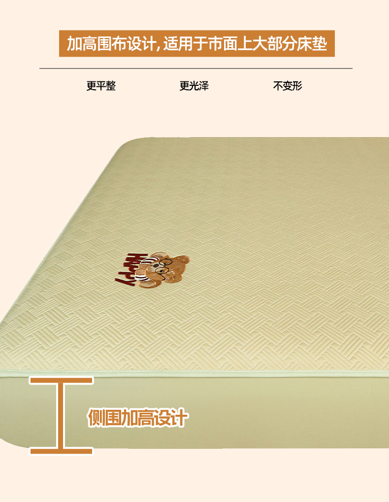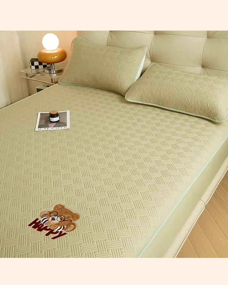 暖季家纺 2025新款40支长绒棉刺绣款全棉夹棉床笠支持定制 博士小熊-抹茶绿