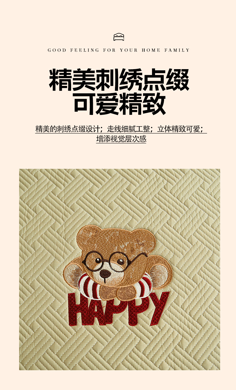 商品名称:暖季家纺 2025新款40支长绒棉刺绣款全棉夹棉床笠支持定制 博士小熊-抹茶绿