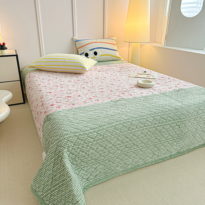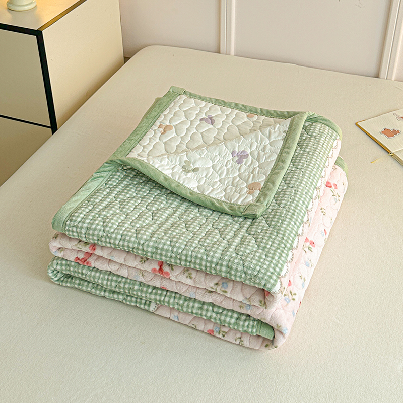2025新款高克重牛奶绒印花单床盖 慕斯-绿