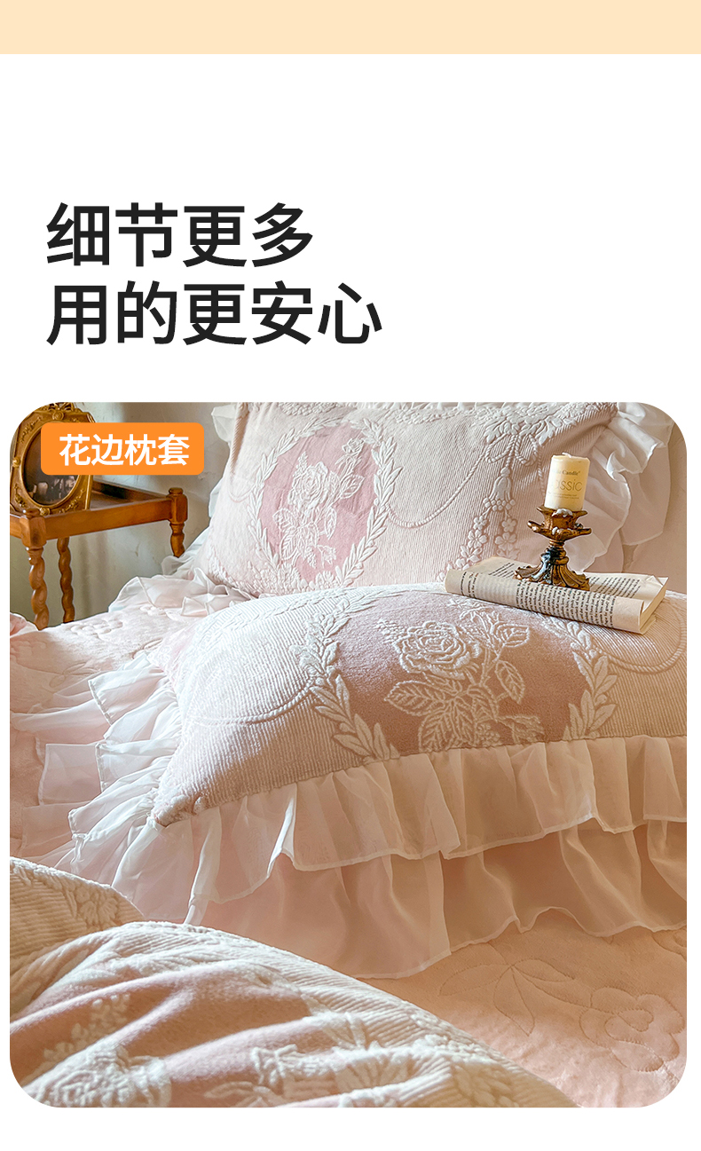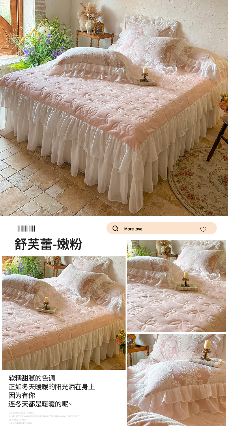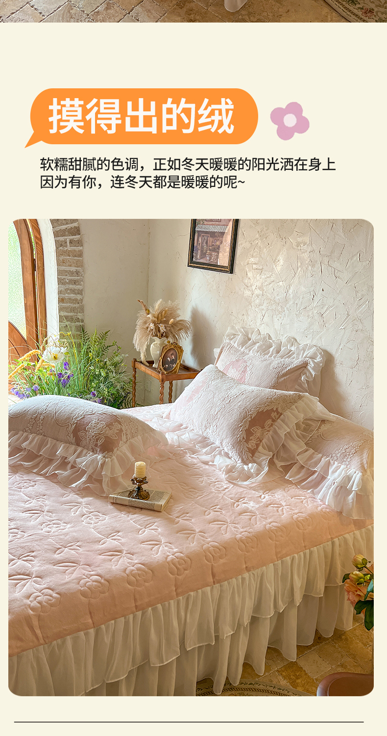 商品名称:网红馆(ck家纺) 2025新款雕花绒床裙四件套单床裙--舒芙蕾 舒芙蕾-嫩粉