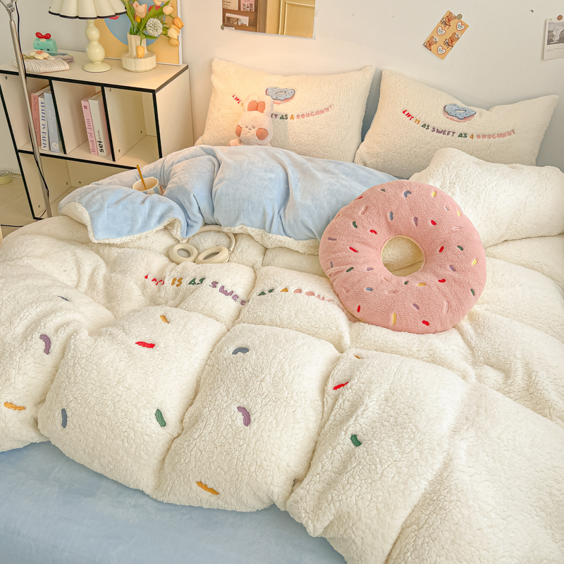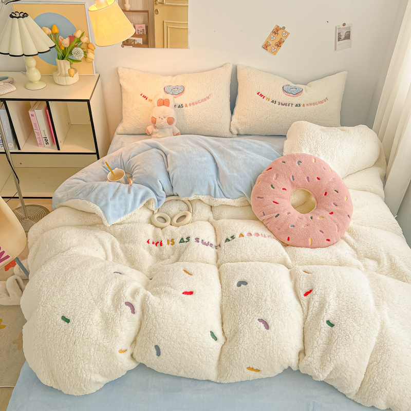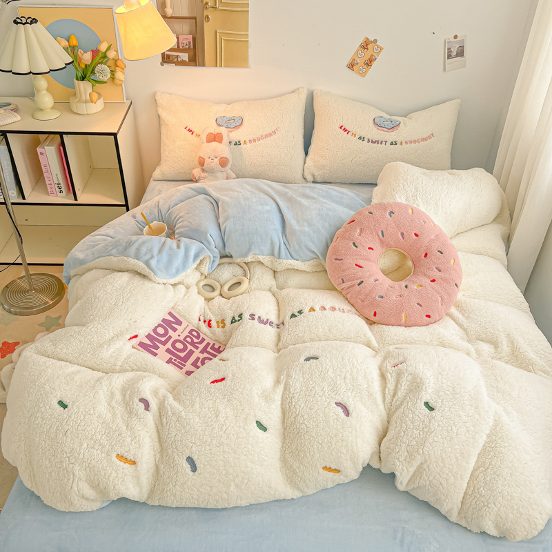 (总)盼季家纺 2025新款小清新羊羔绒四件套加厚牛奶绒保暖床单被套宿舍三件套,羊羔绒甜甜圈-奶粉,羊羔绒甜甜圈-奶黄,羊羔绒甜甜圈-奶蓝