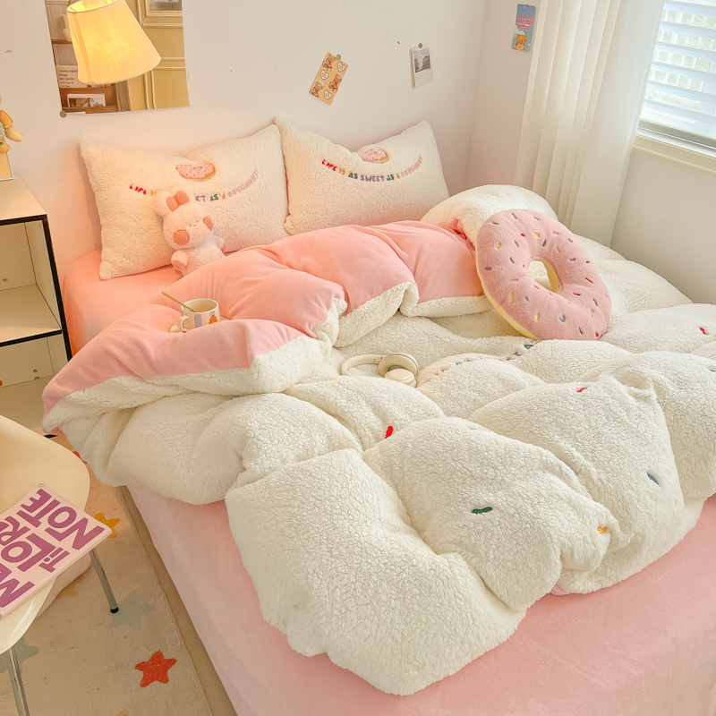 盼季家纺 2024新款高克重羊羔绒牛奶绒刺绣四件套-甜甜圈(风格一) 甜甜圈-奶黄