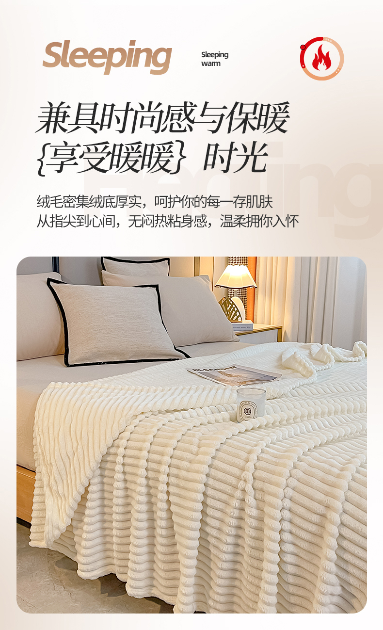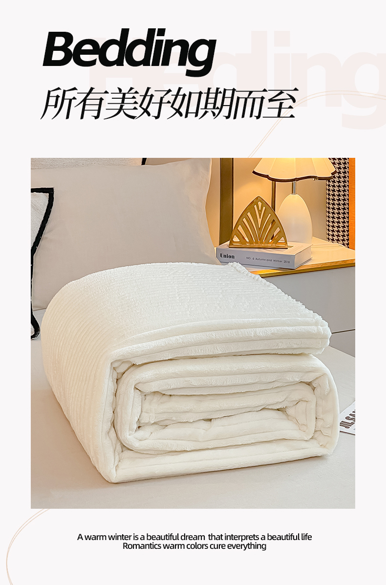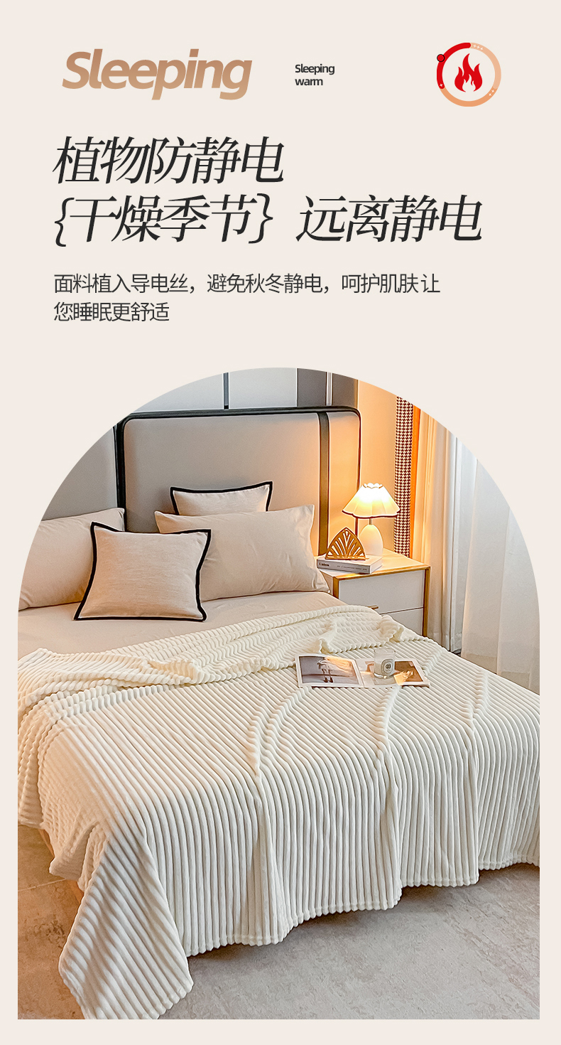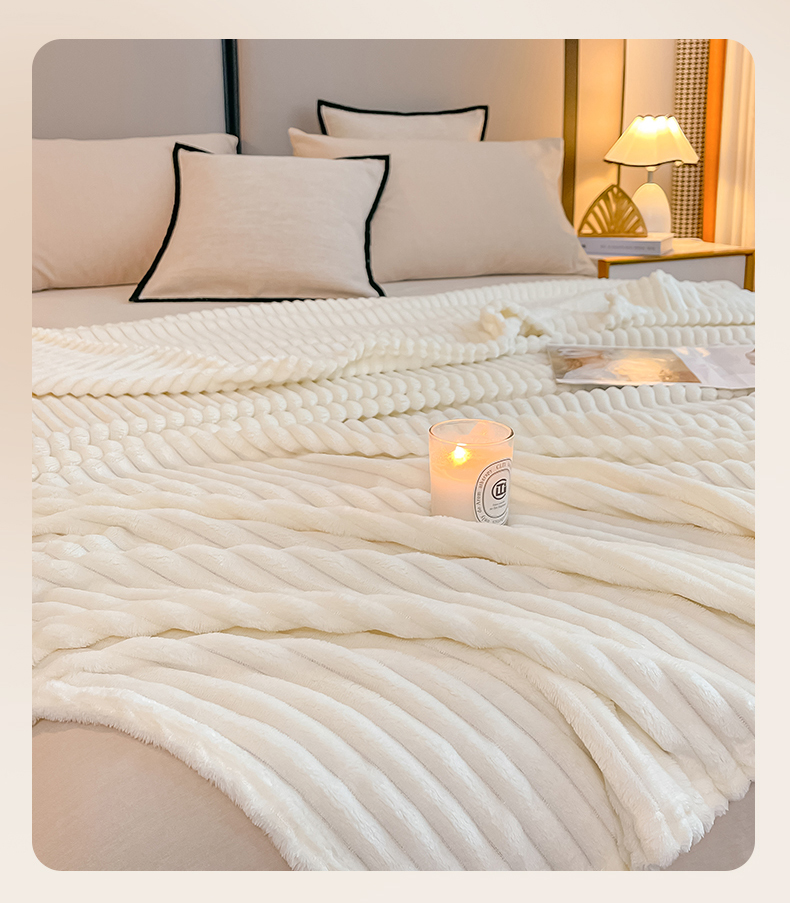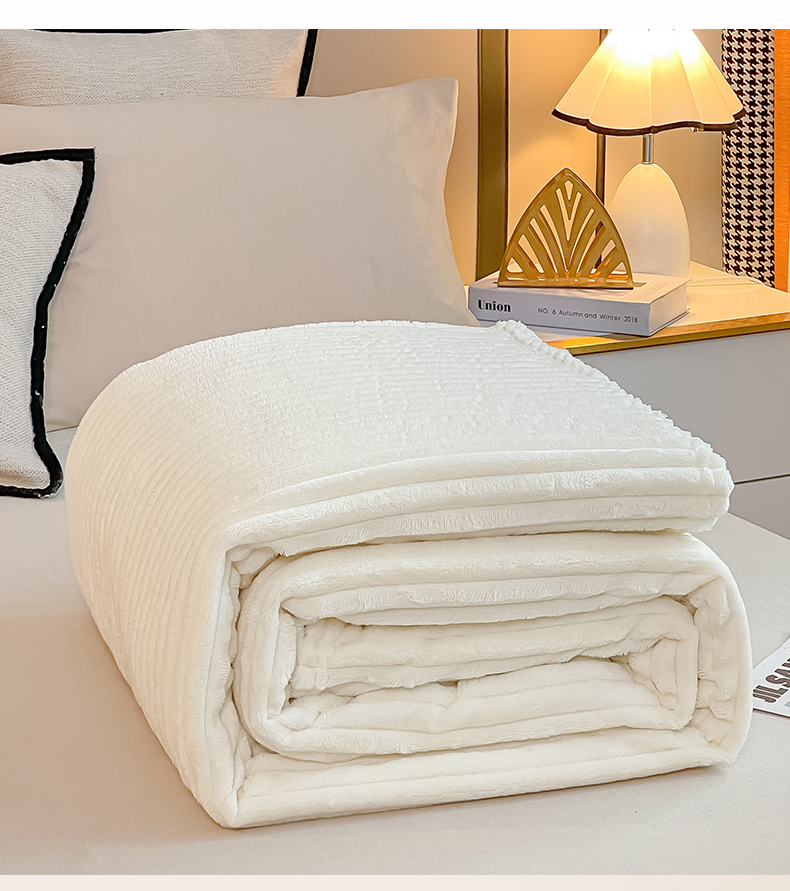 一帆毯业 2024新款抽条压缩代发抽空跨境外贸260克兔毛珊瑚法兰绒空调毯子抽条毛毯简约牛奶绒盖毯 奶昔白